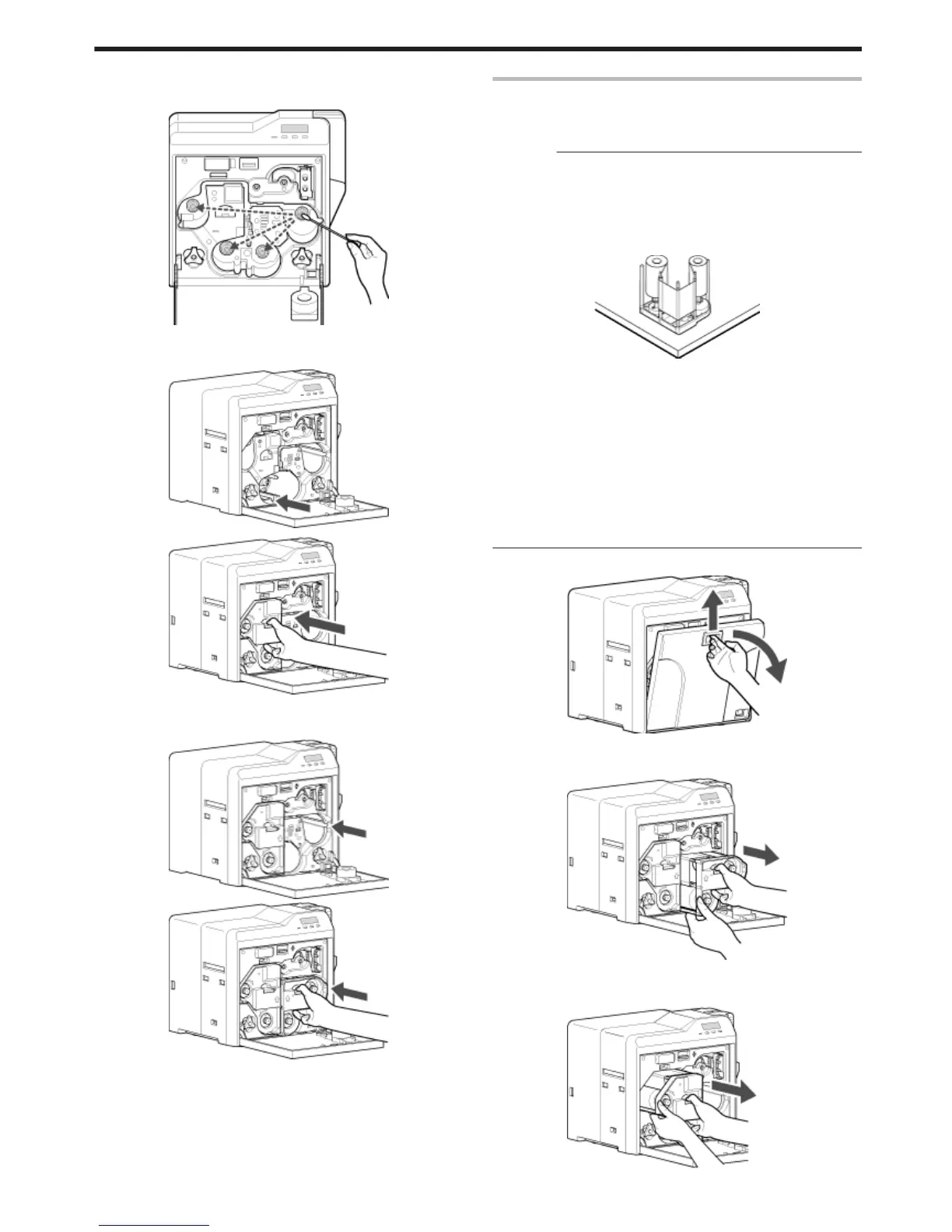 Insert the ink ribbon cassette along the guide rail until a “click”