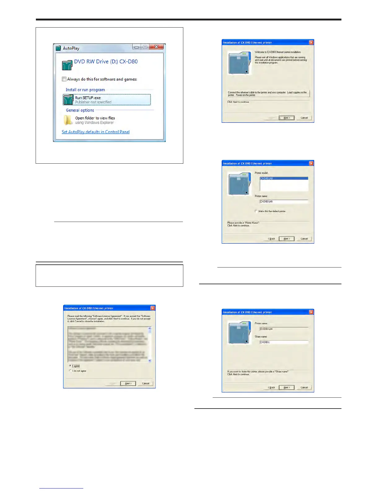A [Installation of CX-D80 Ethernet printer] screen appears.