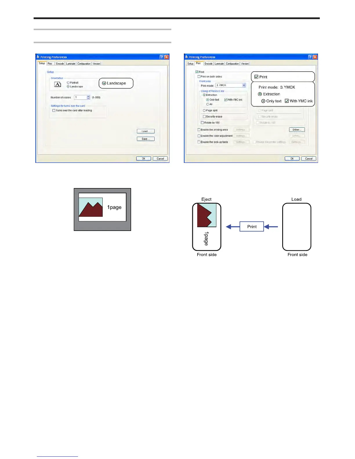 Magicard PRIMA401 - Example of Printer Setting; Single-Sided Printing (Landscape)