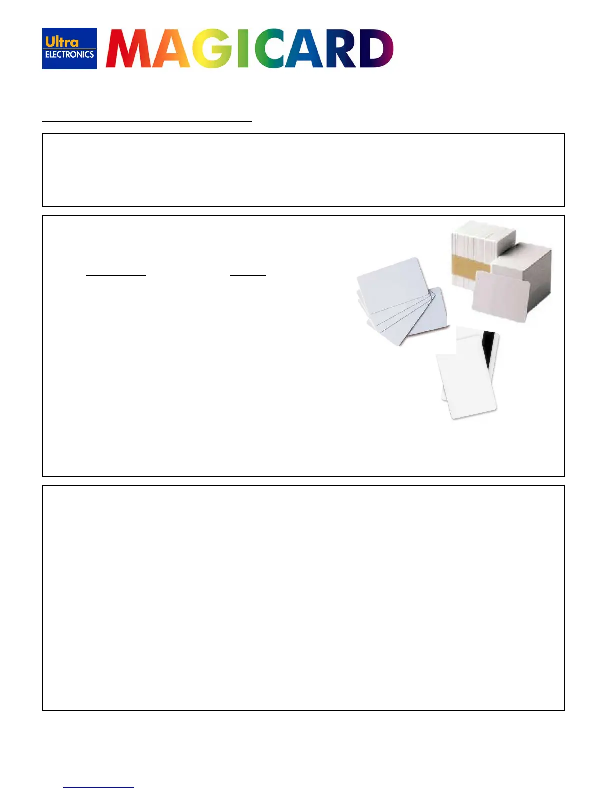 We recommend only self adhesive cards supplied by Ultra Electronics via your Magicard dealership. There are many different types of