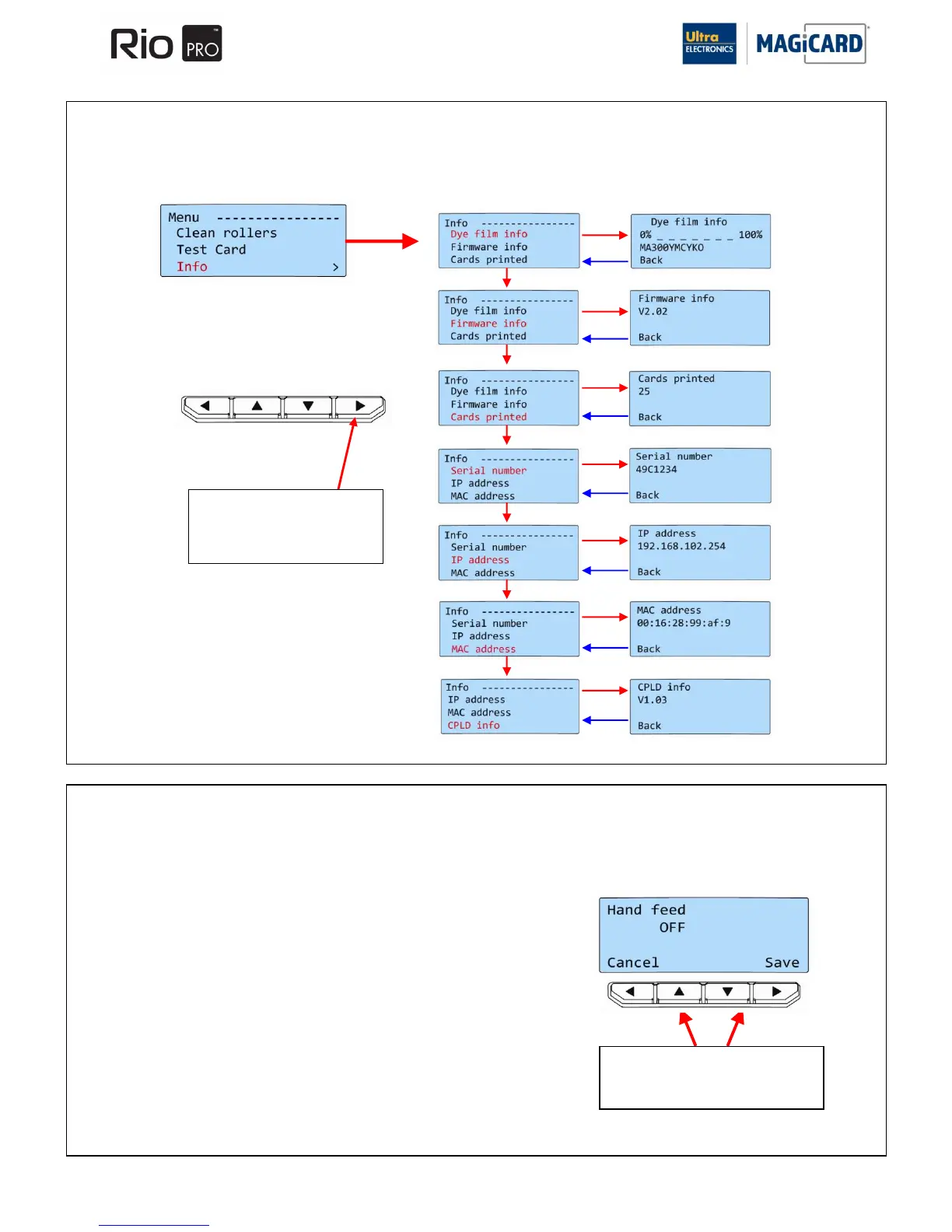 Use this section to switch the Printer between “Automatic Card Feed” (Card feeder at the rear) or “Hand Feed” (front slot).