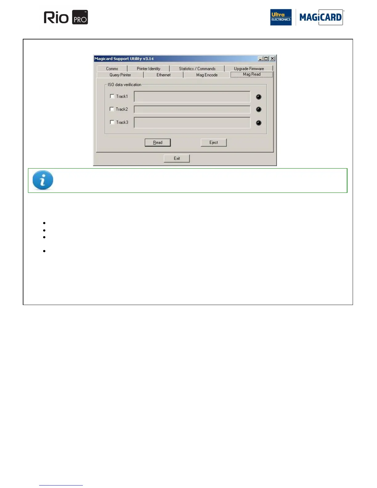 PLEASE NOTE:- The Magnetic Reader function is NOT a reliable indicator of magnetic Encoding quality.