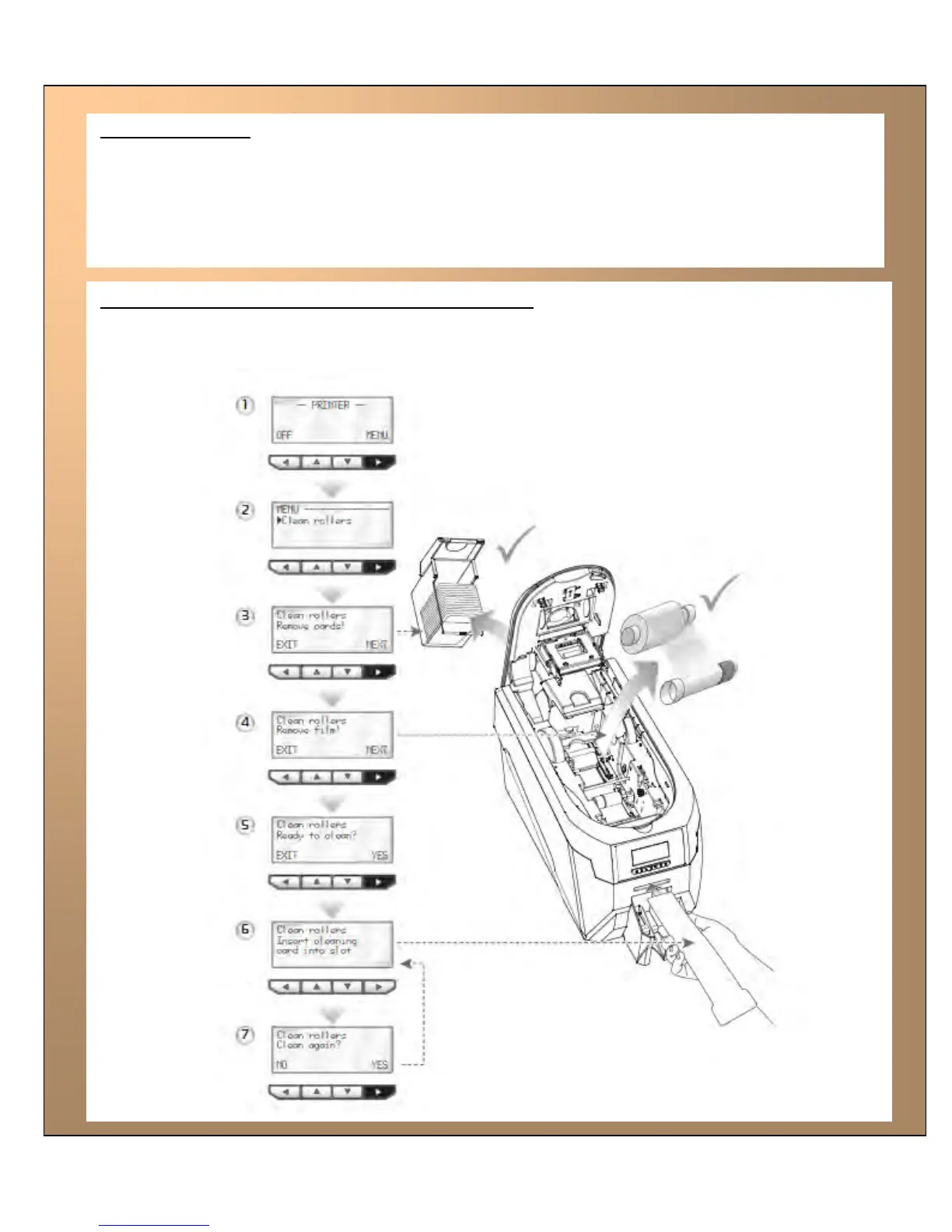 To prevent the PVC cards slipping on the rollers during printing, we recommend that you clean your