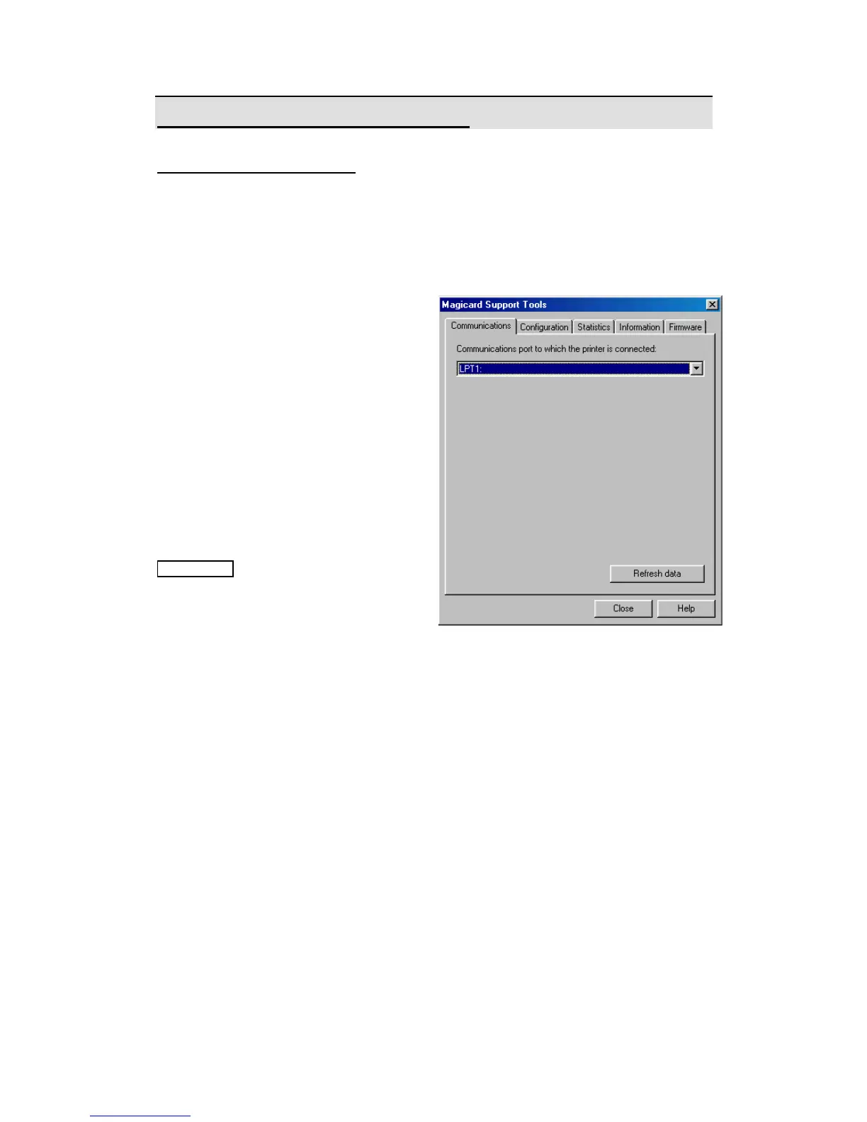 Select the Magicard Support Tool program on your computer. The Communications window