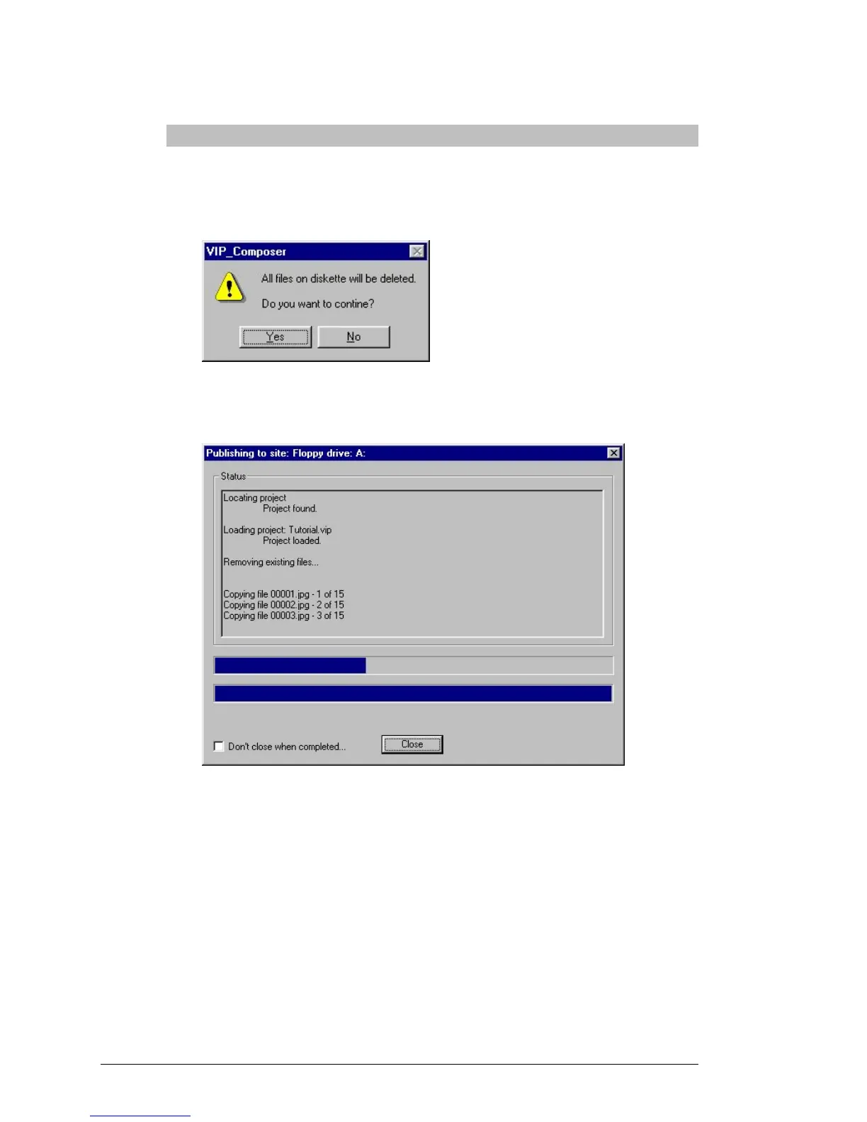Click on “Yes” to continue. The floppy-publish status
