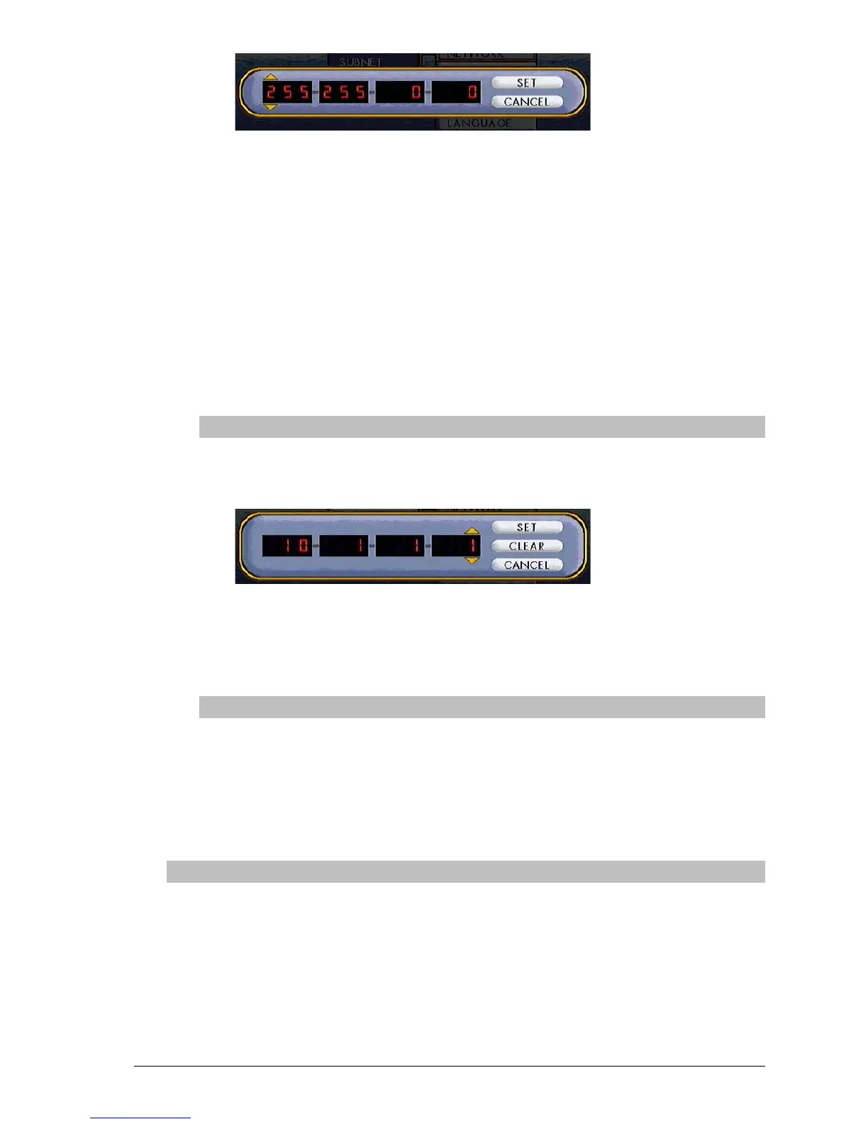 digital display. Select the Subnet value that matches the one