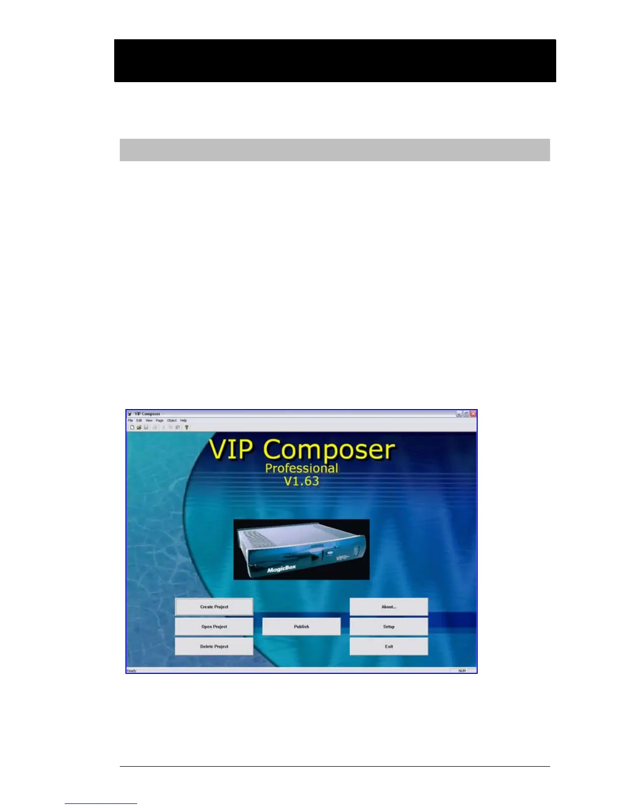 Project”, “Delete Project”, “Publish”, “About”, “Setup”, and “Exit”.