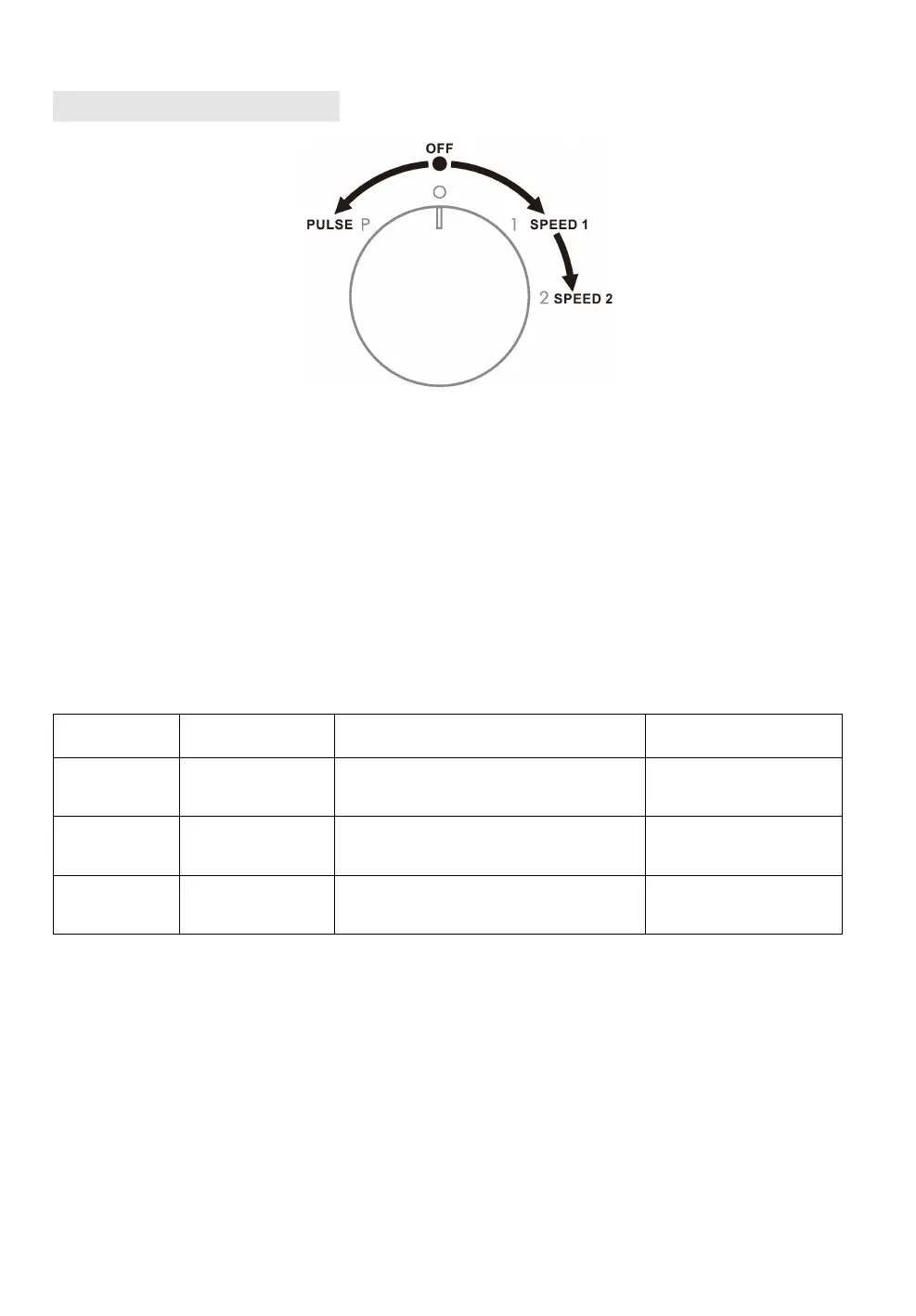 speeds according to the accessories and food, please find recommended speeds in