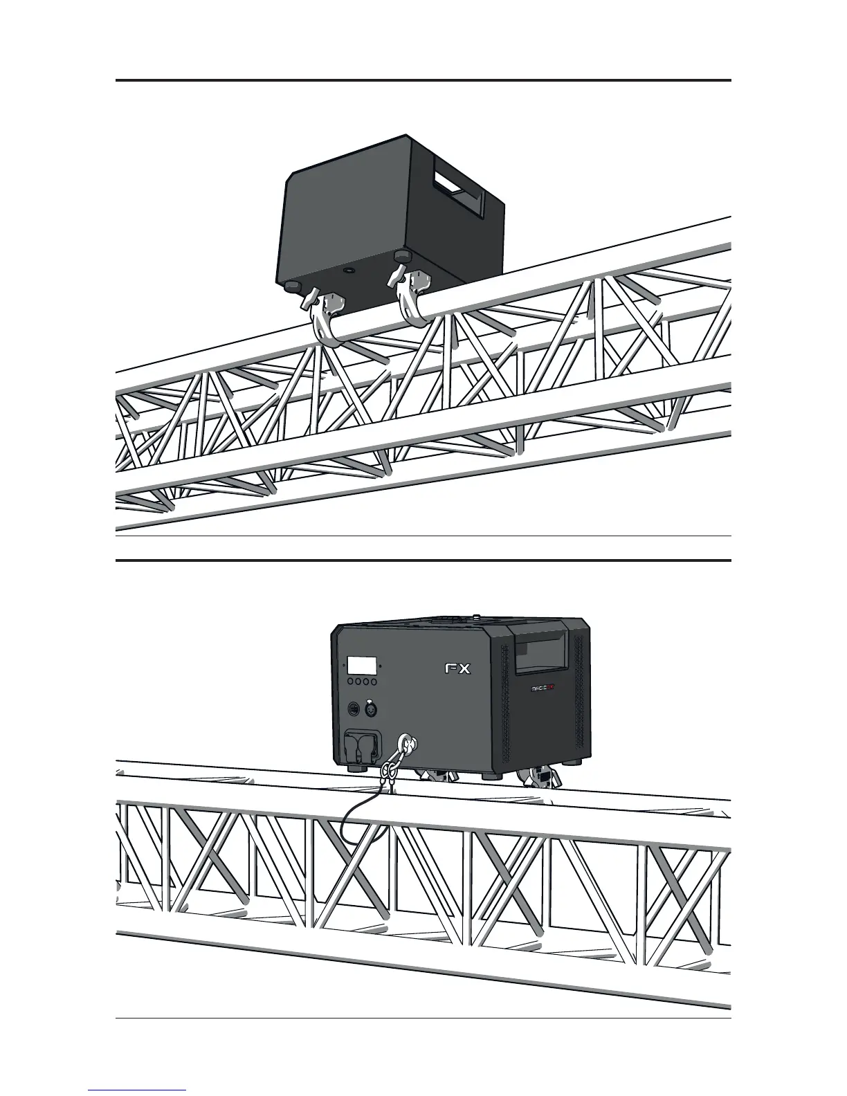 2 Mount the clamps rmly on a truss.