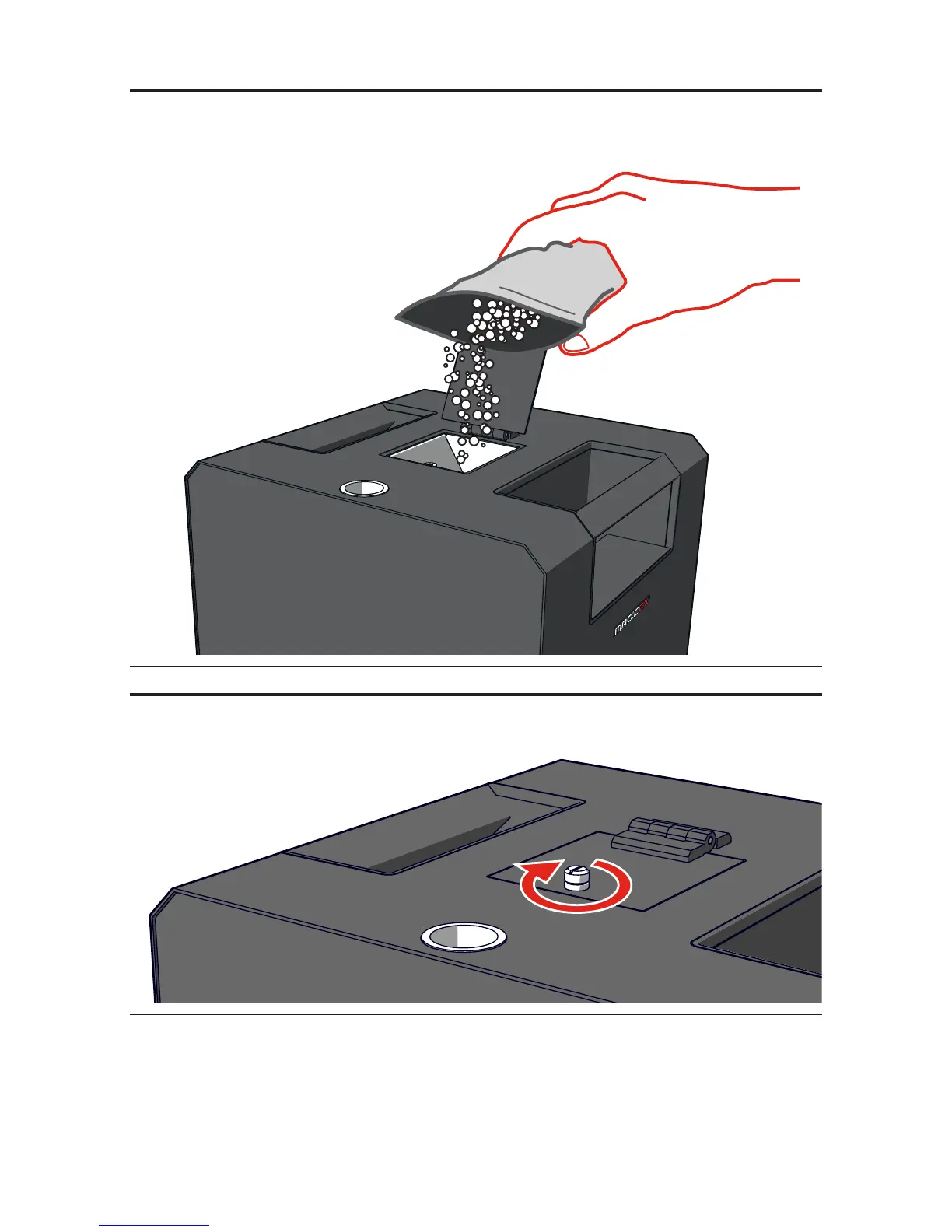 3 Open the powder bag(s) and ll the hopper with powder (maximum of two