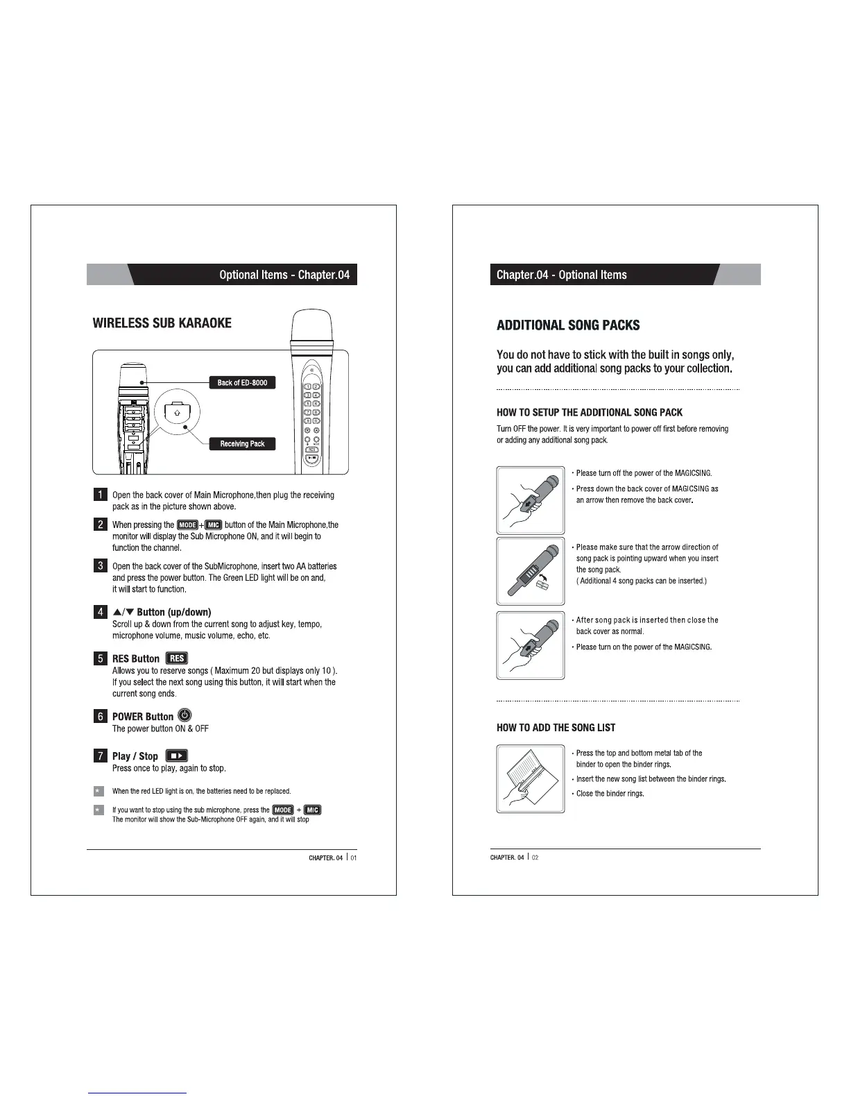 Magicsing ED-8000 - Chapter 04 - Optional Items; Wireless Sub Karaoke; Additional Song Packs