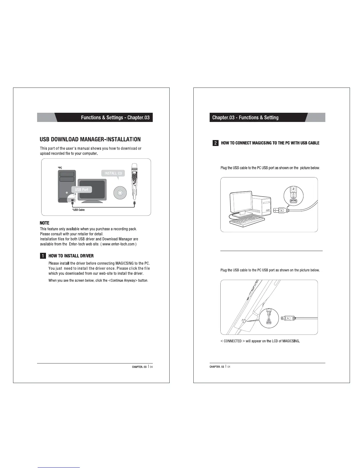 Magicsing ED-8000 - Chapter 03 - USB Download Manager; How to Install Driver; How to Connect MAGICSING to PC with USB Cable