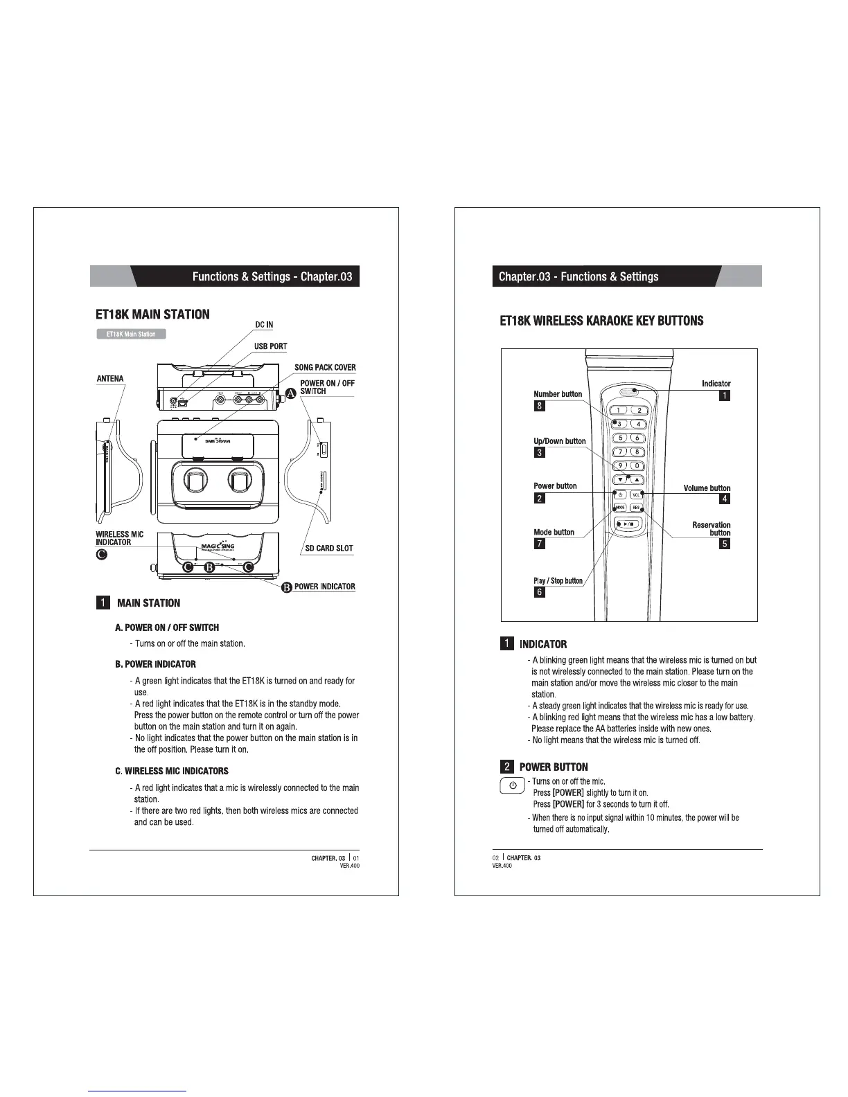 Magicsing ET18K - ET18 K Main Station; ET18 K Wireless Karaoke Key Buttons