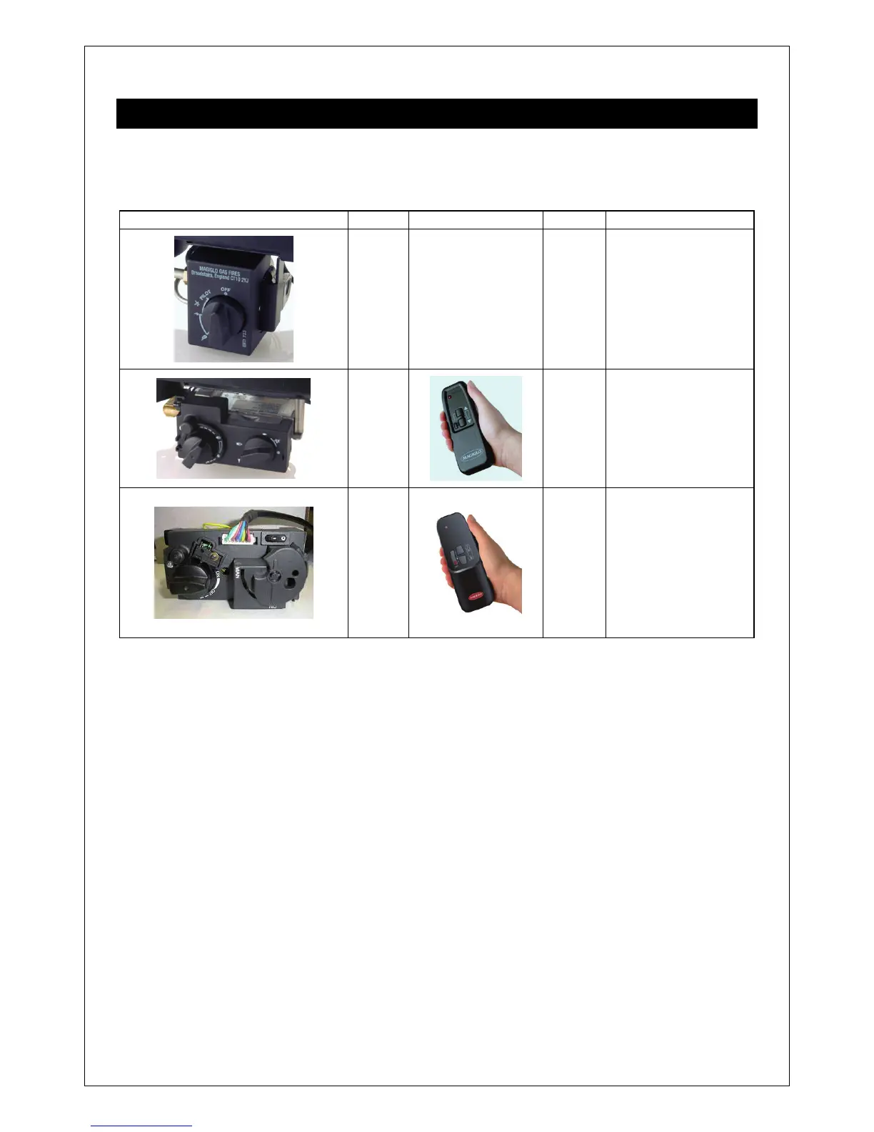 control system on your fire as shown and follow the appropriate operating instructions in the