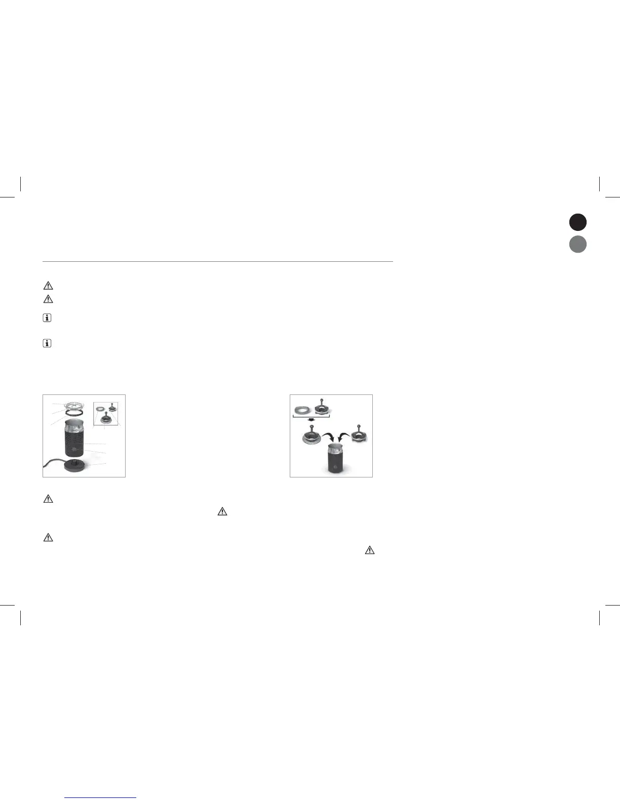 CAUTION: Risk of electrical shock and re! Make sure the under side of the milk frother is dry.
