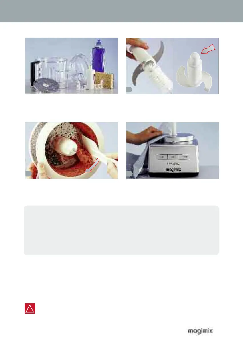 • Washing by hand : do not leave the parts to soak in detergent for too long. Avoid