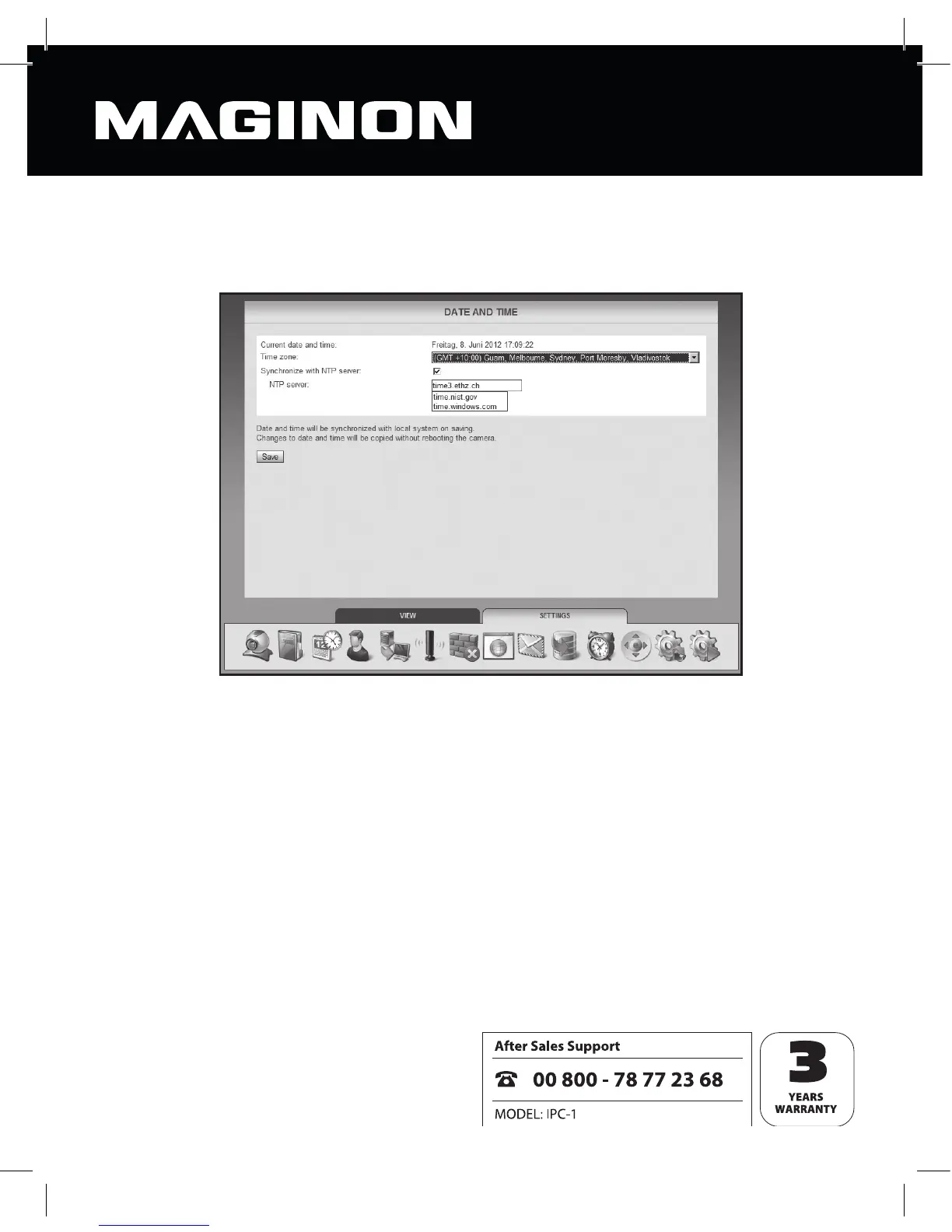 Specify here which time zone the camera is in and whether the date and time are to be