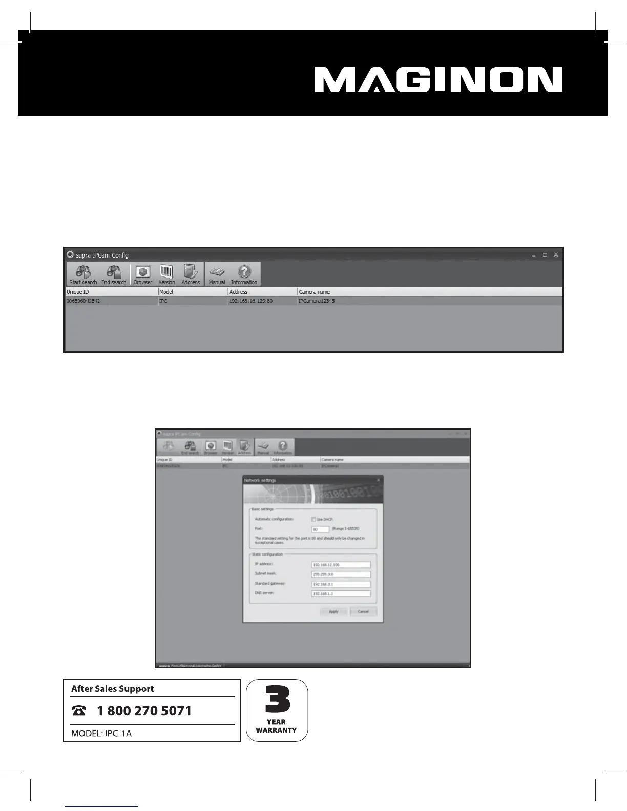 In the program select “Start search” to view a list of reachable WiFi Network Cameras.