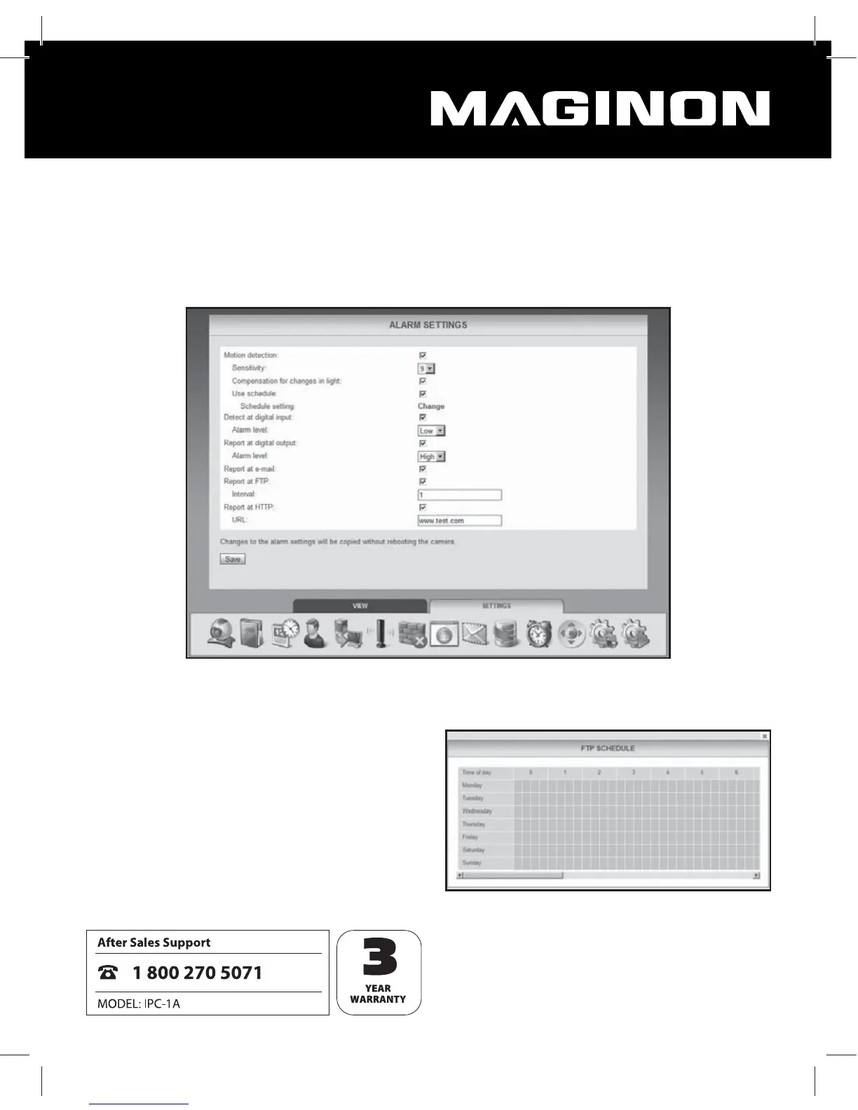 and what steps should be taken in case of an alarm incident. Select “Alarm settings” from the
