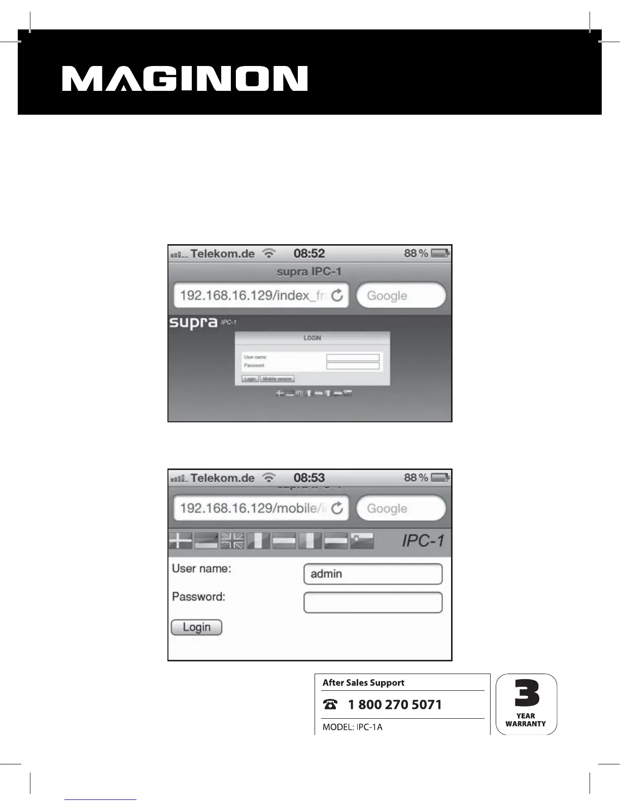 Smartphones or Tablet PCs. Open the start page of the WiFi Network Camera in the Browser
