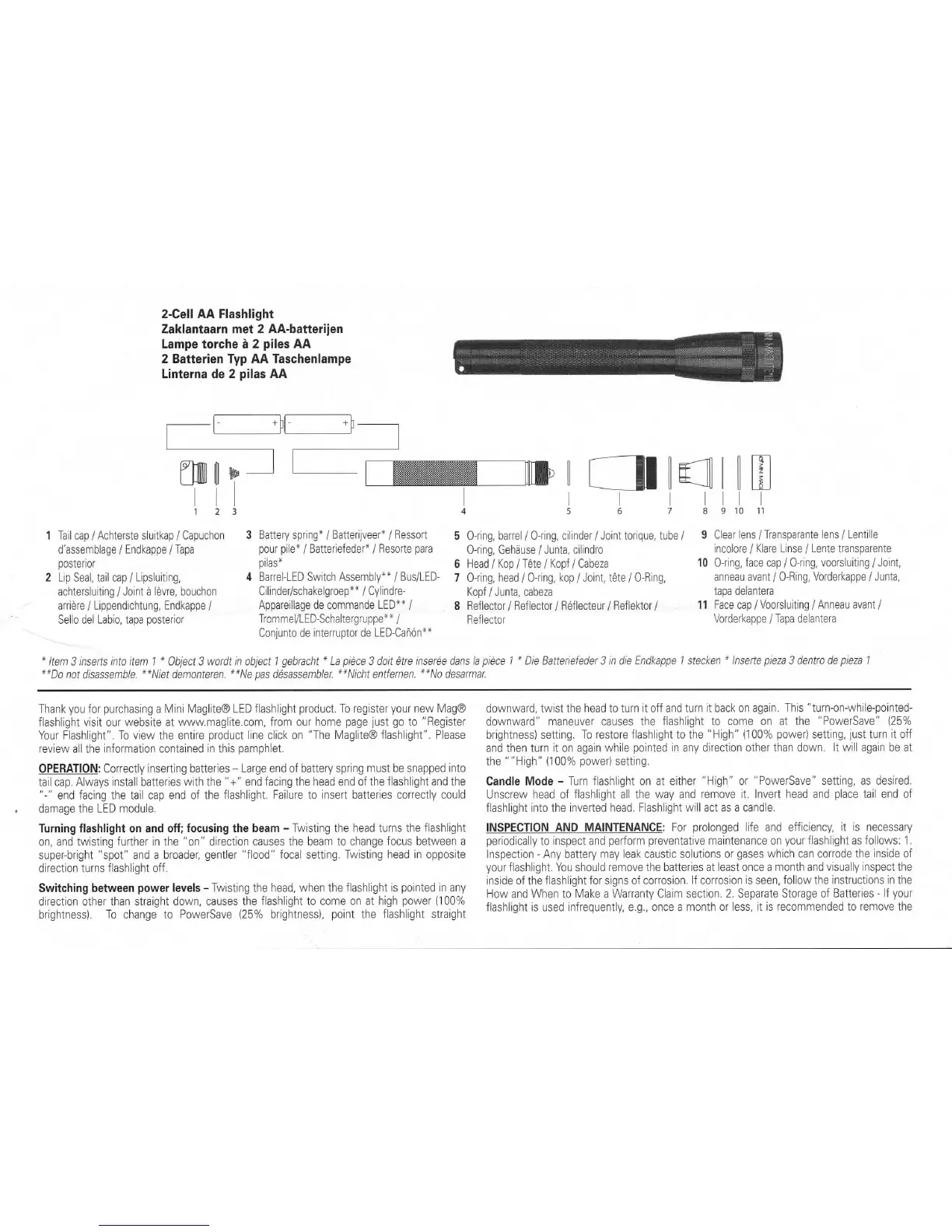 Maglite Pro+ - Flashlight Operation; Correct Battery Insertion; Power Level Selection