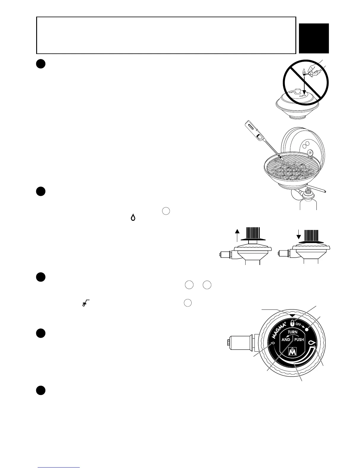 • Barbeque-Grill nie mit geschlossenem Deckel anzünden.
