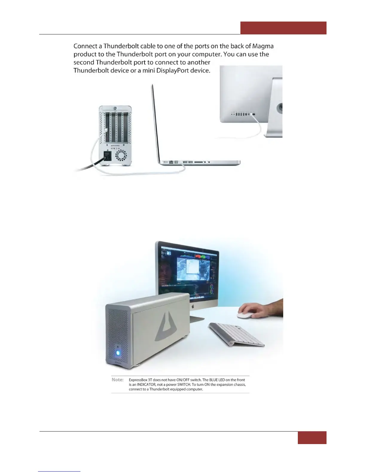 on or off. If either end of the Thunderbolt cable is disconnected, ExpressBox 3T will automatically turn off.