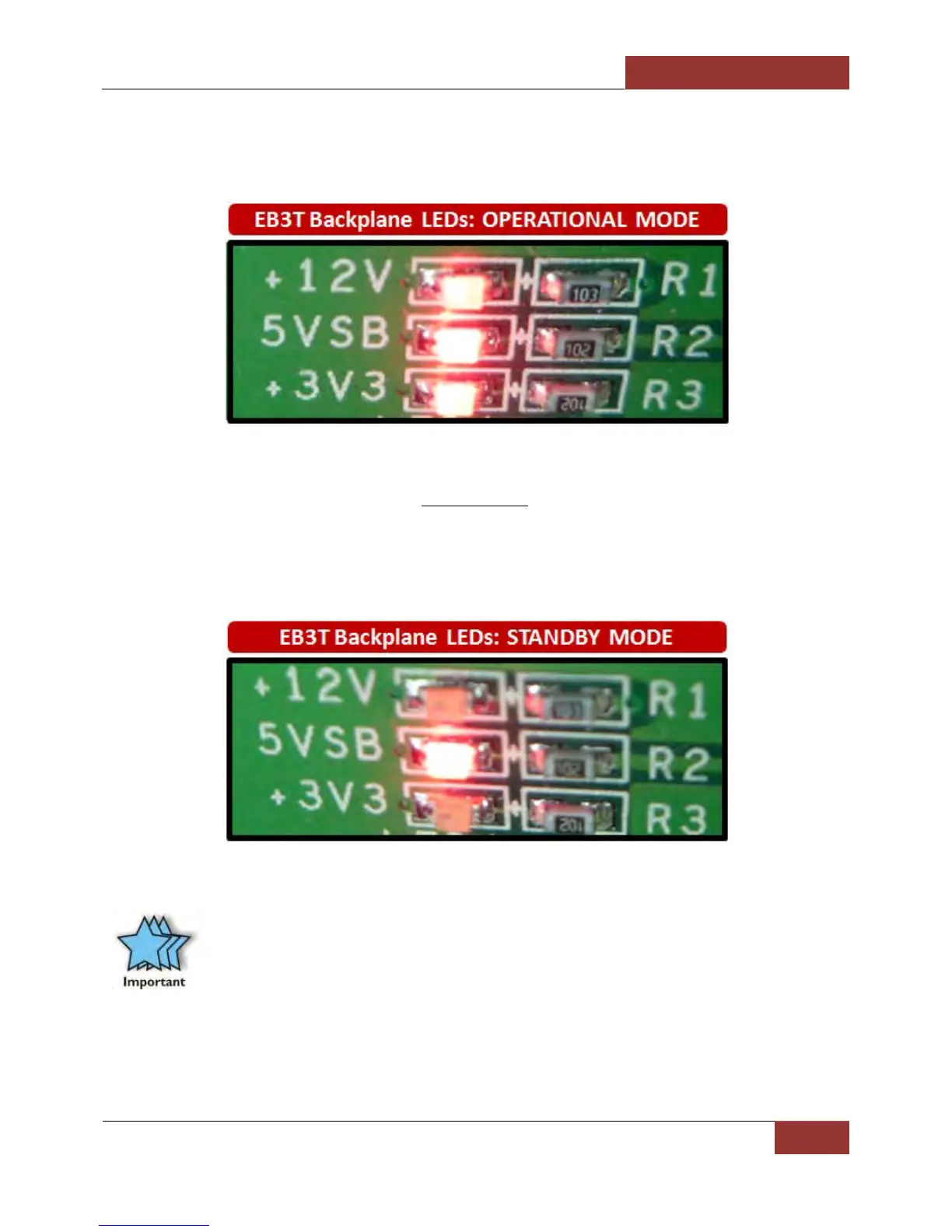 A functional / operational backplane will illuminate three solid RED LEDs. See picture below.