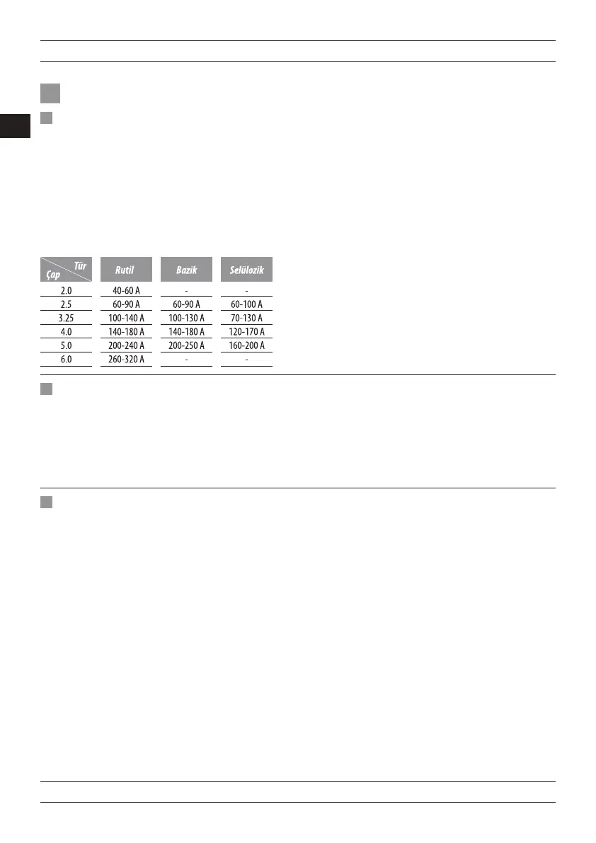 tadır. Kesin parametreler için elektrod üreticisinin tavsiyelerine uyunuz.