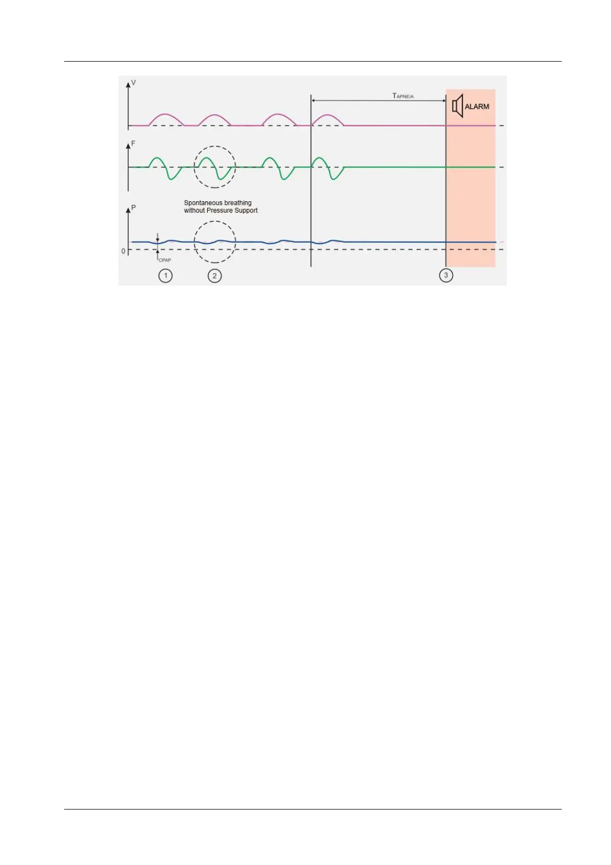 3. If the patient does not breathe after the time for apnea, the ventilator presents that condition on the