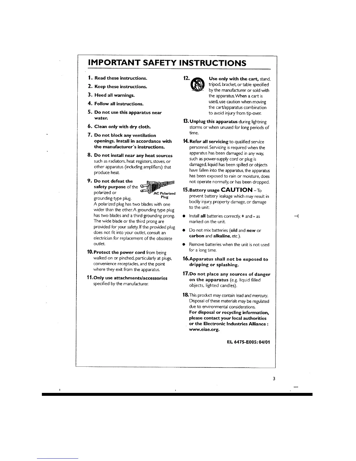Magnavox MPD720 - Important Safety Instructions; General Safety Guidelines