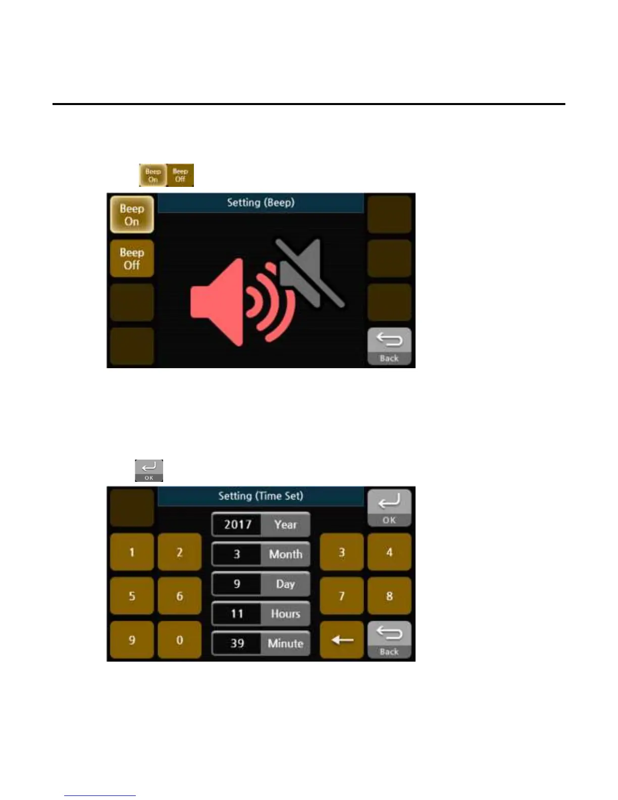 Turn ON or OFF the Beep. If beep setting is ON, the beep tone will be generated when button is