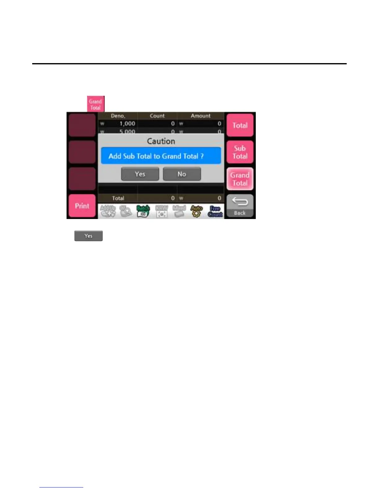Show the denomination and number of banknotes, the total amount of the banknotes received from