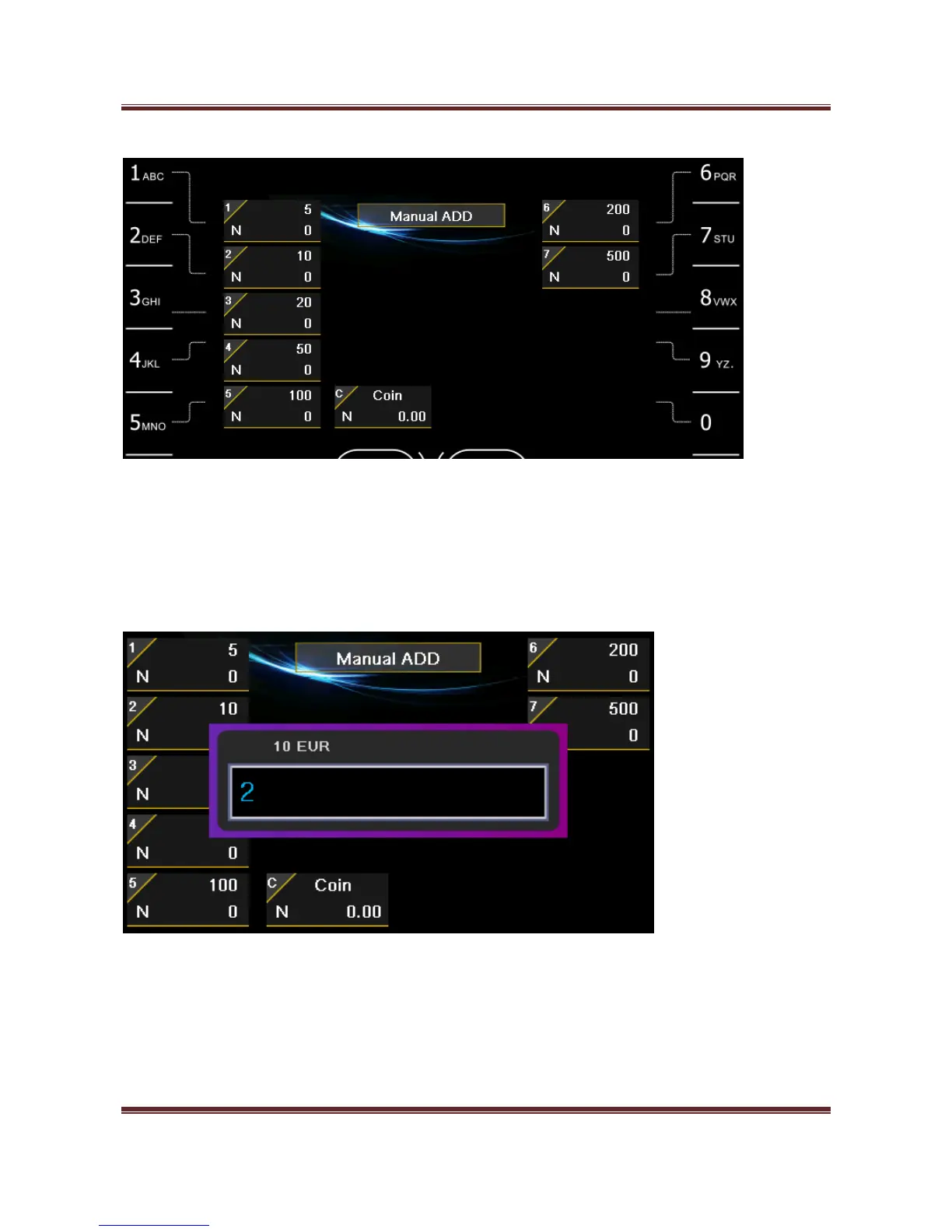 After select the denomination by pressing number keys, enter the number of notes and press SET key for