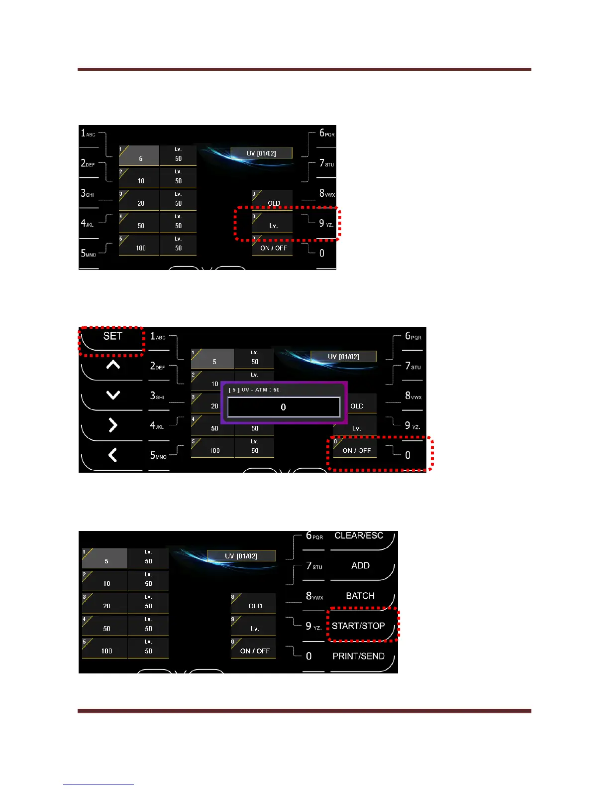 Enter level by pressing number keys and SET key or select Counterfeit ON/OFF by pressing 0 key.