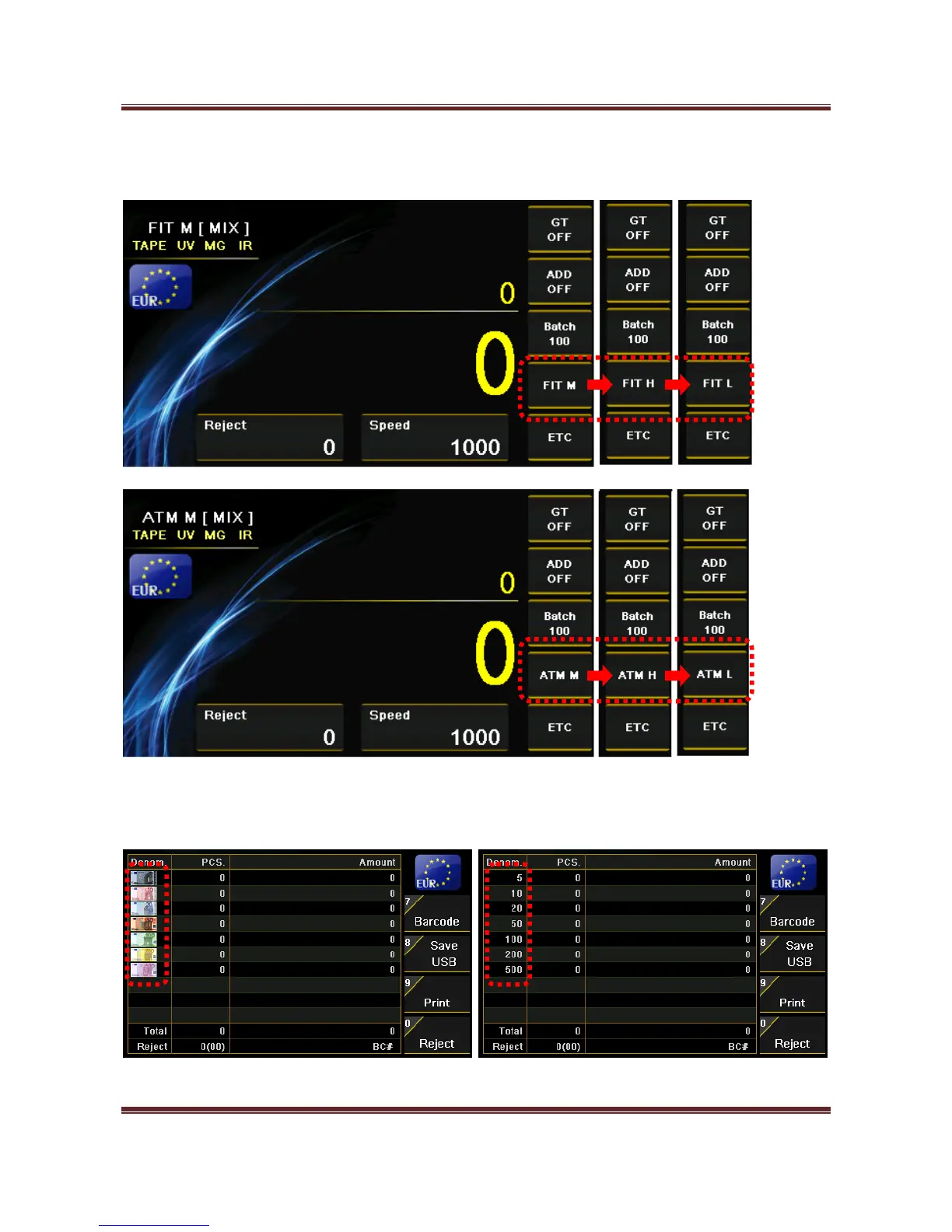 Set the display type of face value, Text or Image, from the counting result.