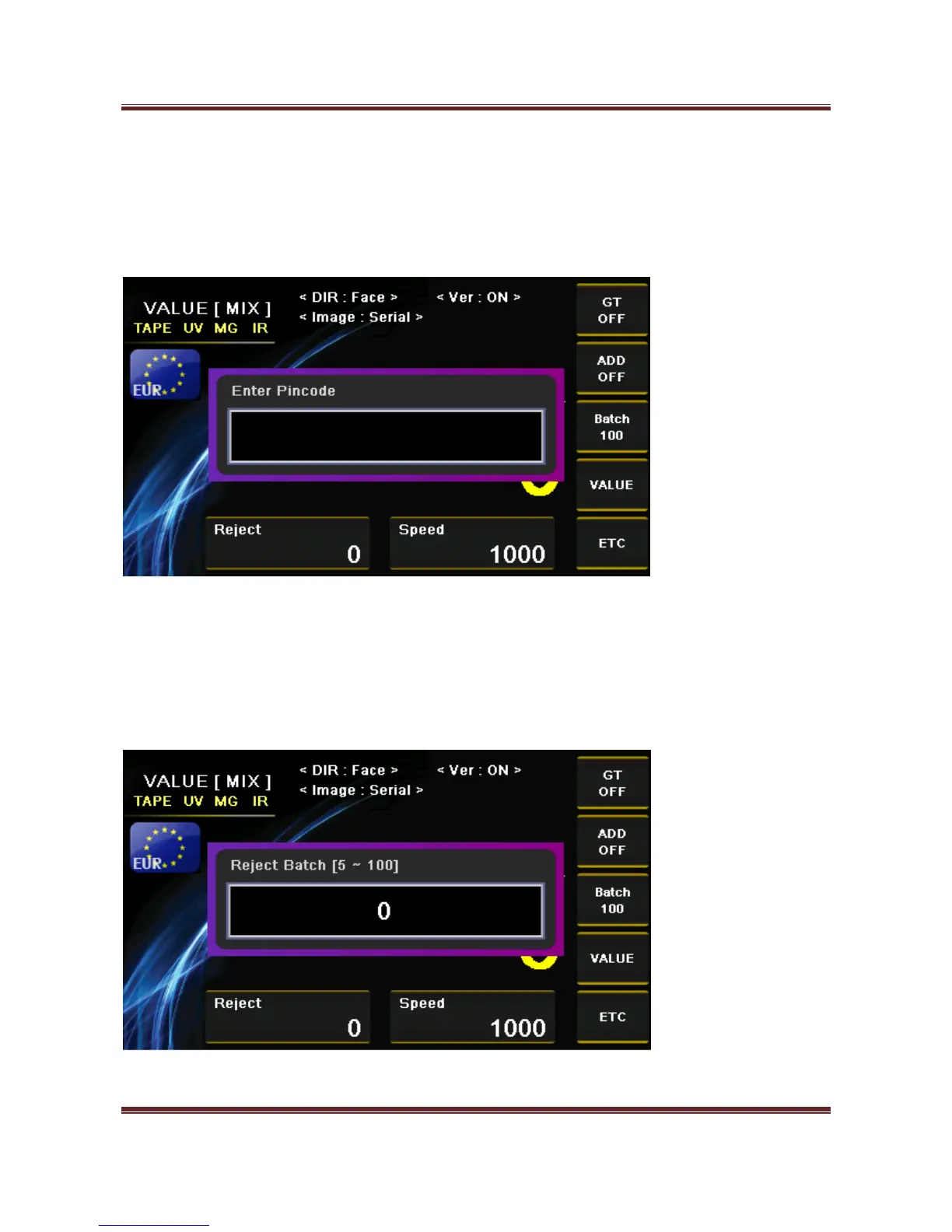 2) Reject Batch number. (5 ~100) (Pincode is needed.)