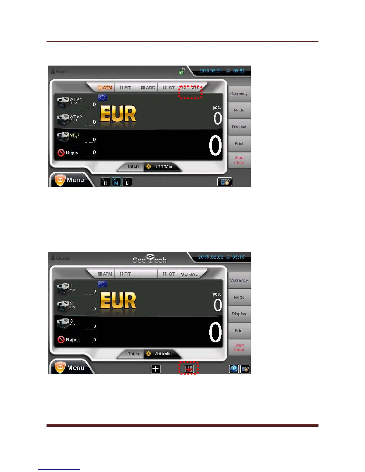 recognized note is sent to Pocket 1 and the next recognized note is stacked to Pocket 2. Unfit notes are