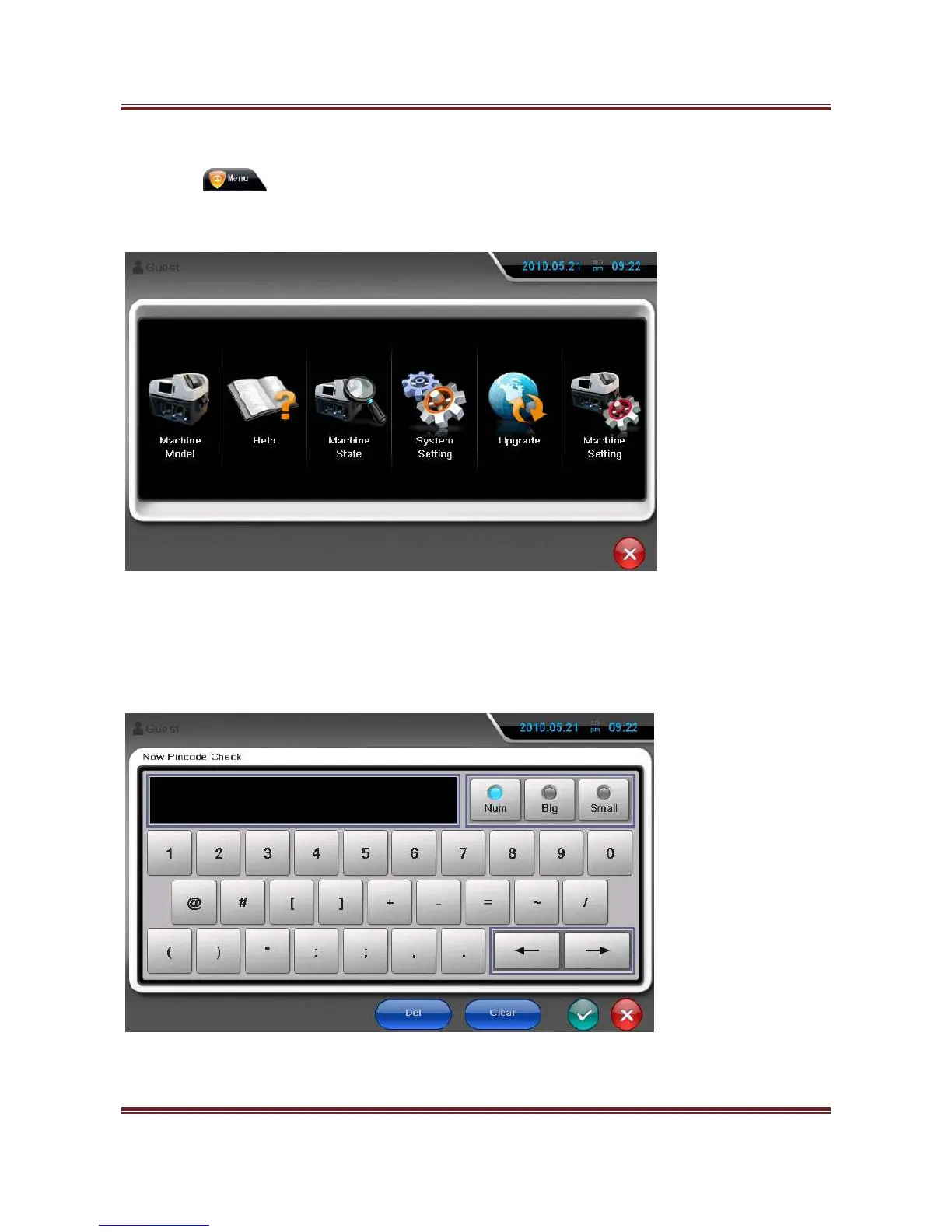 By pressing , the hidden menu is shown as below. User can change operation setting and check