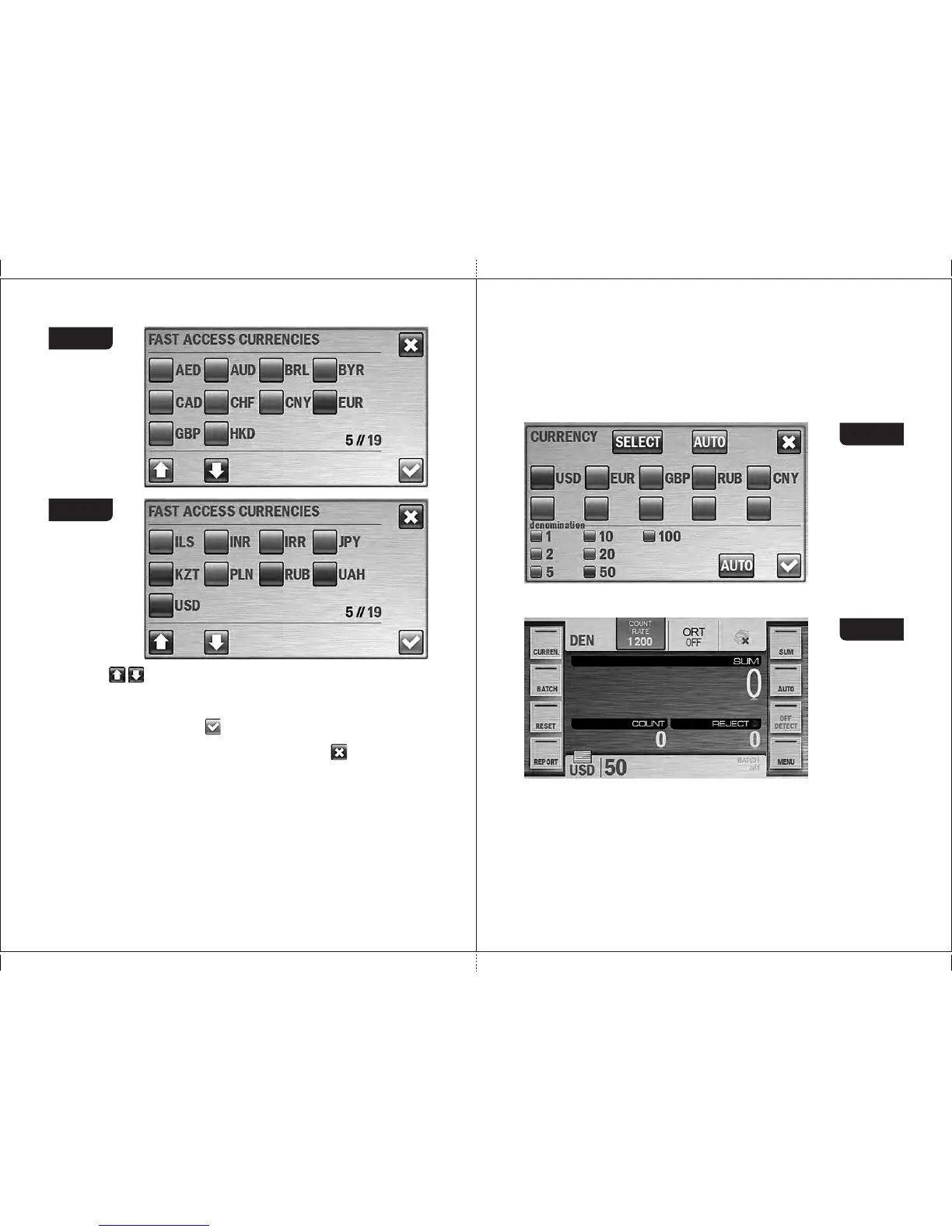Keys allow scrolling of the list of available currencies. If scrolling