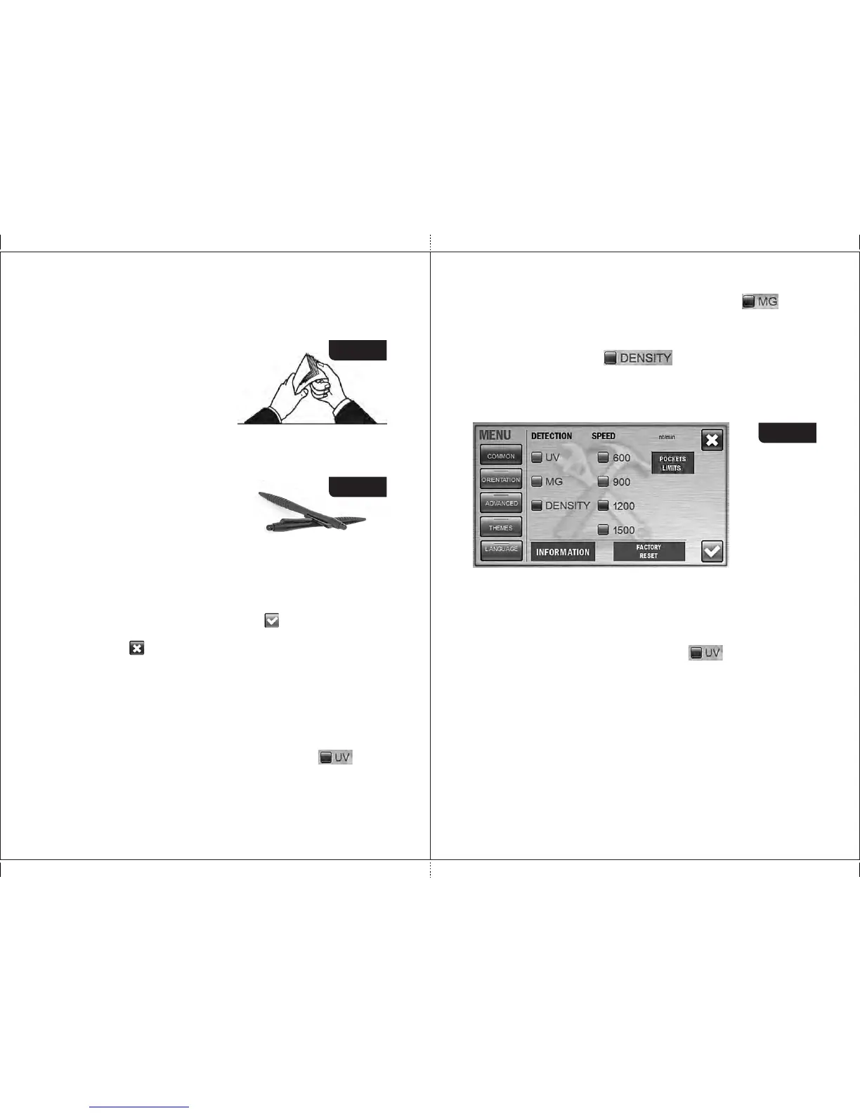 highlighted in blue. For counting of worn notes we suggest low speed (600 or