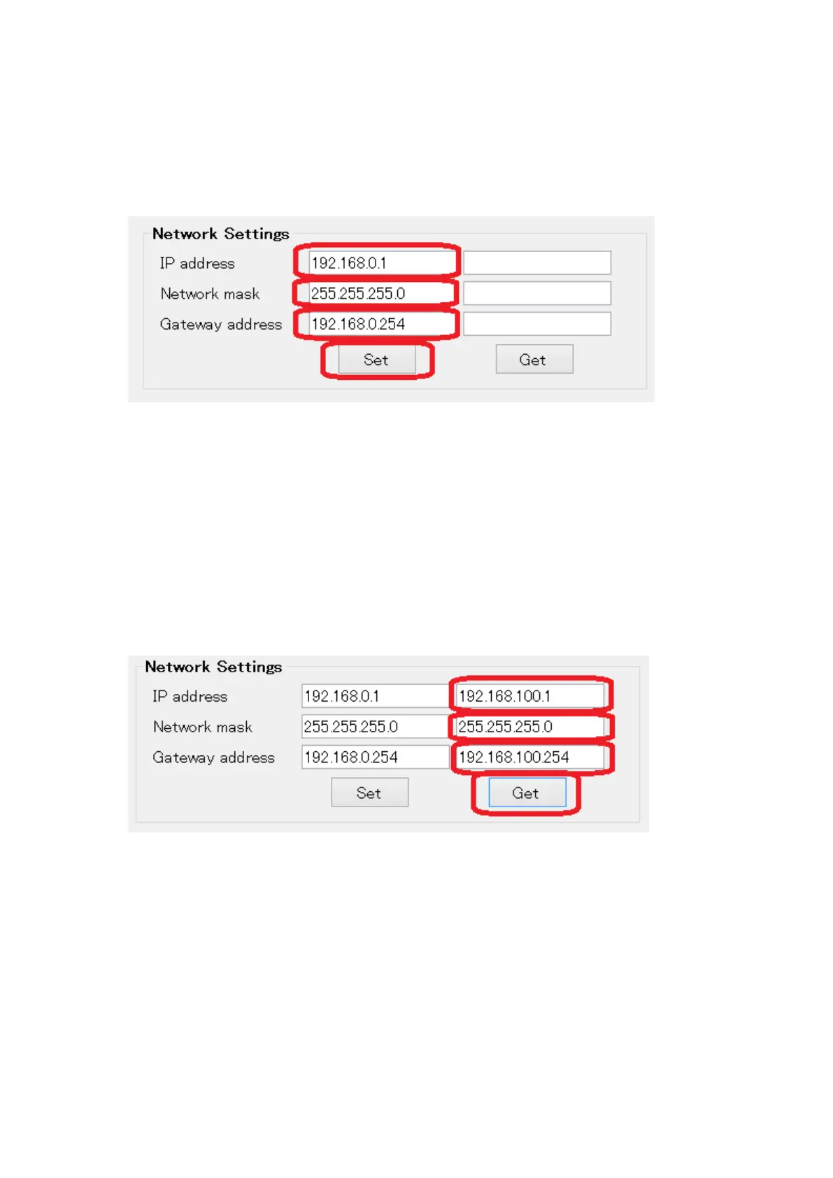 Click “Get” button to confirm the settings saved in the MG80-EI.