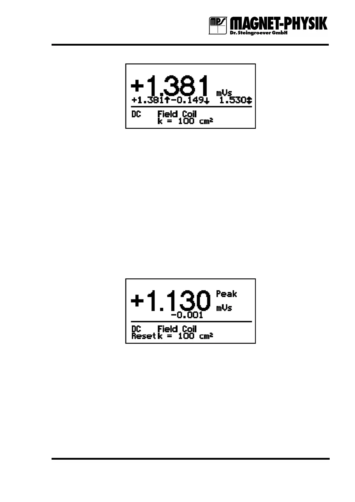 In AC mode the Peak function shows the peak value of the flux waveform and not the peak
