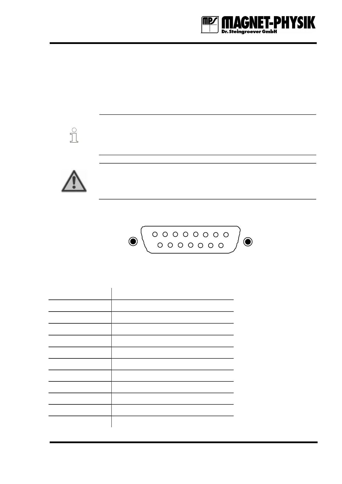 Table 7.1.1.1: Assignments of the 15-pole Sub-D socket