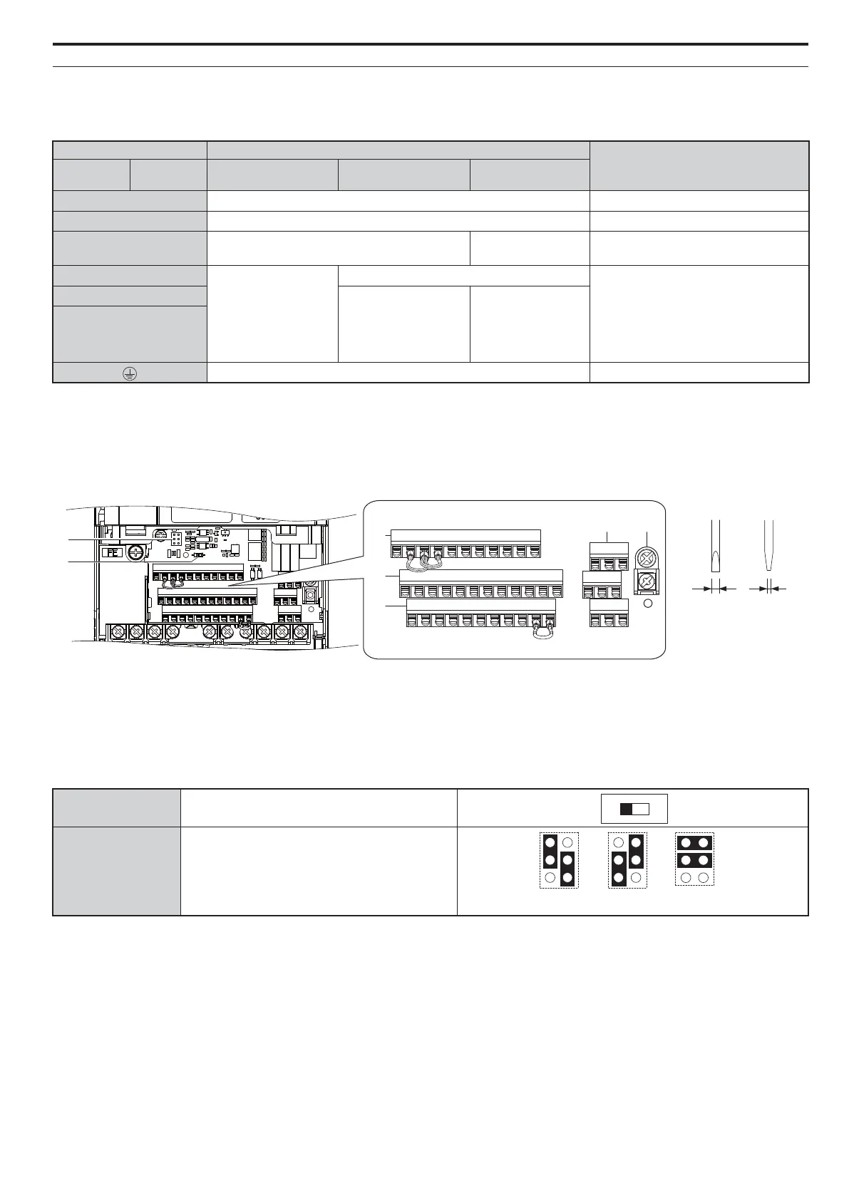 The figure below shows the control circuit terminal arrangement. The drive is equipped with screwless terminals.