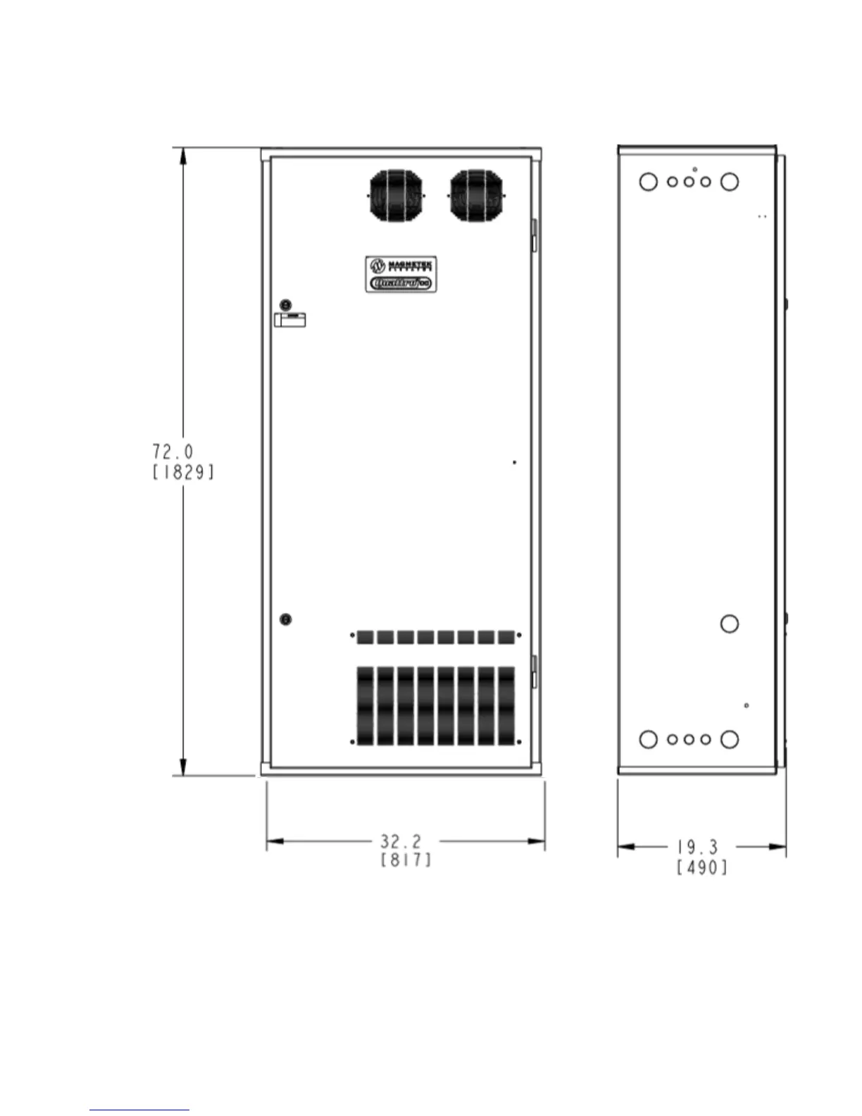 Figure 24: Dimensions with optional Customer I/O Panel no Top Hat