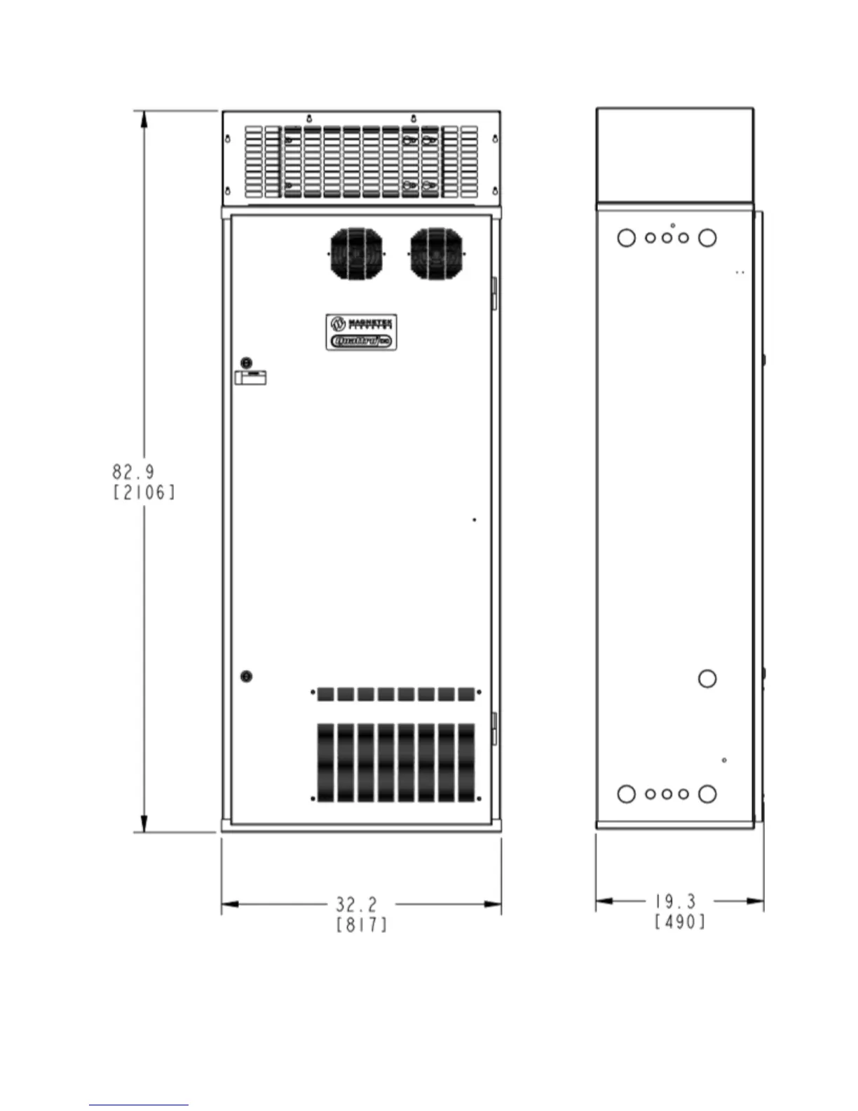 Figure 26: Dimensions with optional Customer I/O Panel includes Top Hat