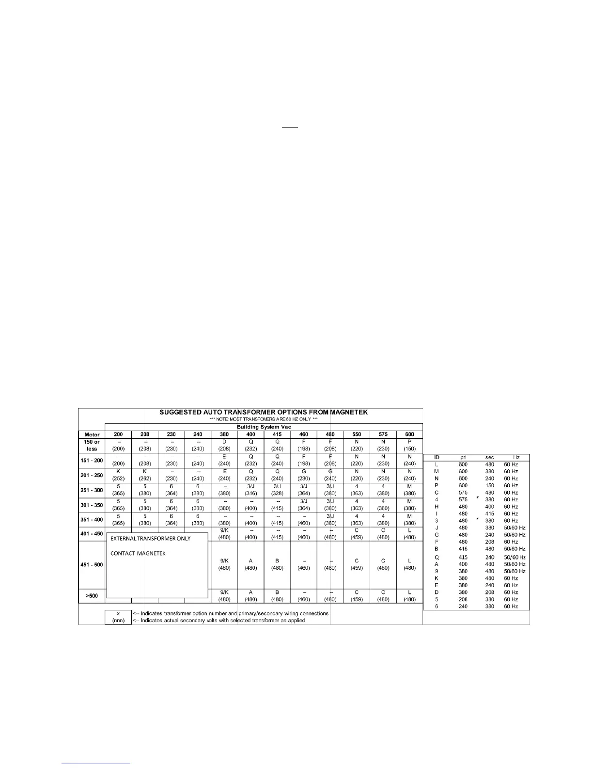 it would be required that the voltage be stepped up. Magnetek has optional Auto transformers