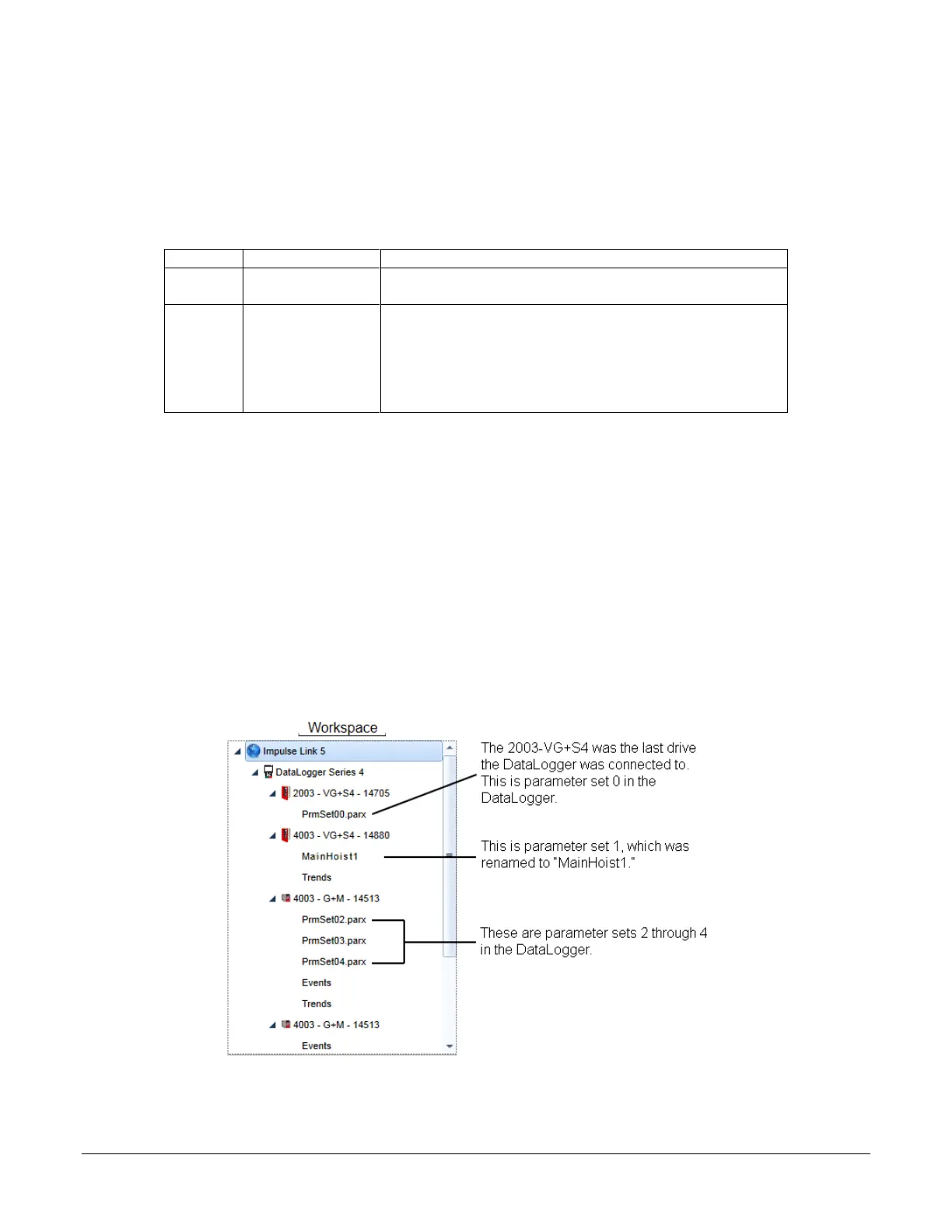 drive in the Workspace. Parameter set 00 contains the Parameter file from the most recent drive the DataLogger