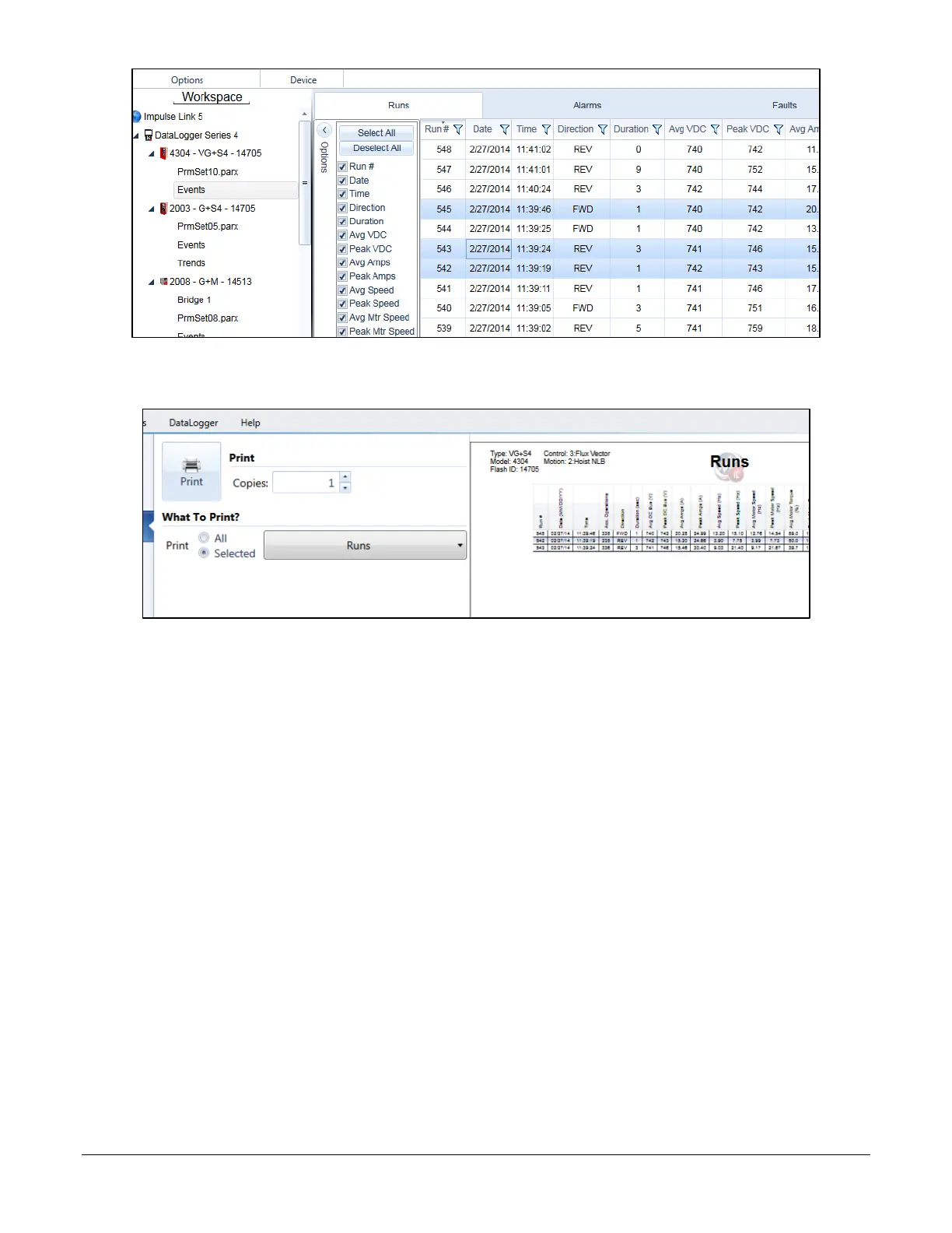 Figure 28: Selecting Specific Runs, Alarms, and/or Faults